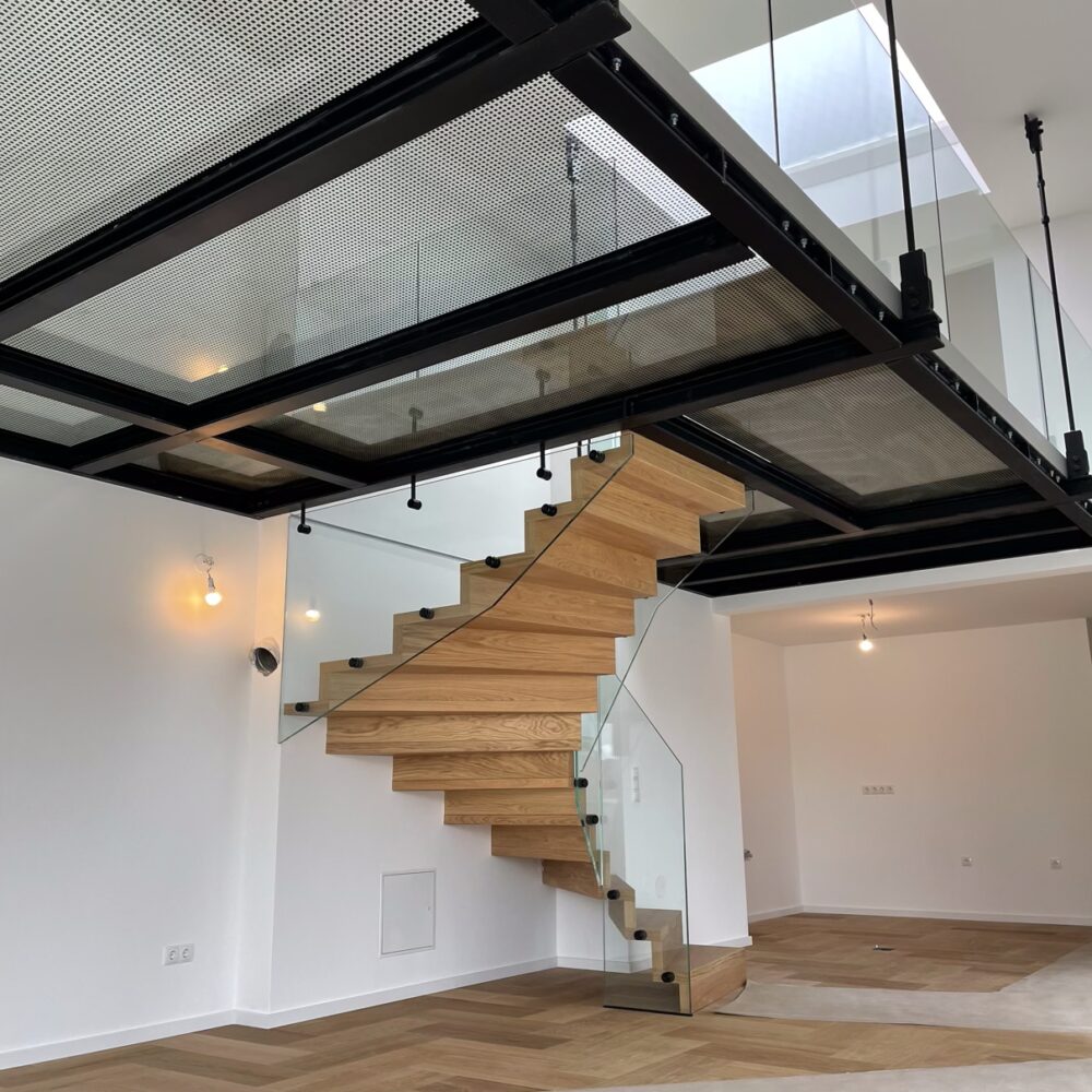 Wir betrachten die Treppe als das Rückgrat des Hauses – eine funktionale Notwendigkeit, die zu einem skulpturalen Meisterwerk wird. Ob Sie nun ein freitragendes Design, eine klassische Wendeltreppe oder eine großzügige Eingangstreppe wünschen, unser Team kümmert sich um die komplexe Tragwerksplanung und Materialauswahl. Wir arbeiten mit Glas, Stahl, Holz und Stein, um vertikale Verbindungen zu schaffen, die ebenso atemberaubend wie solide sind.