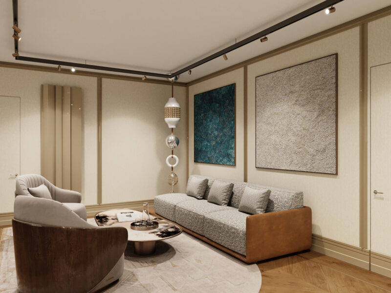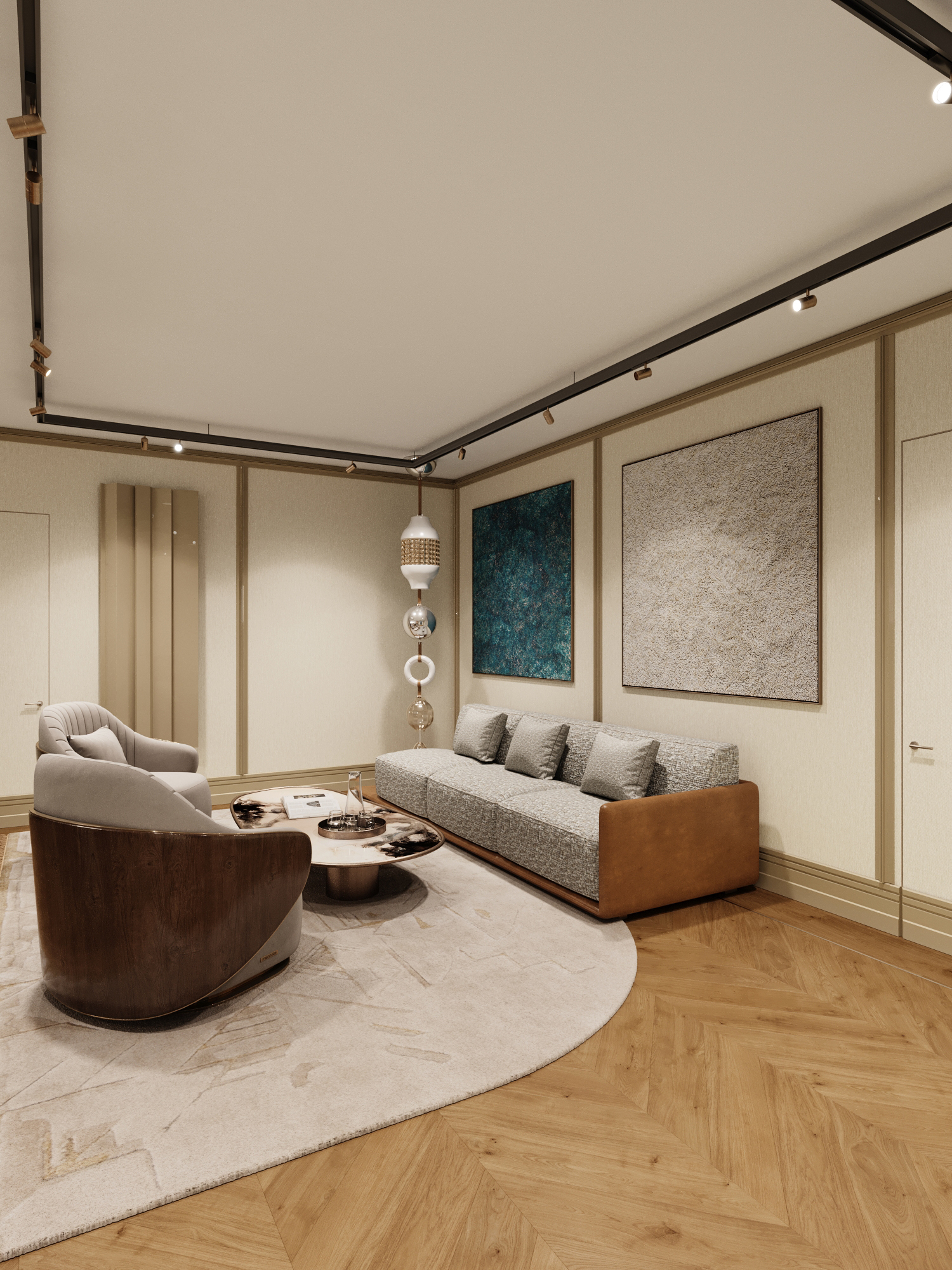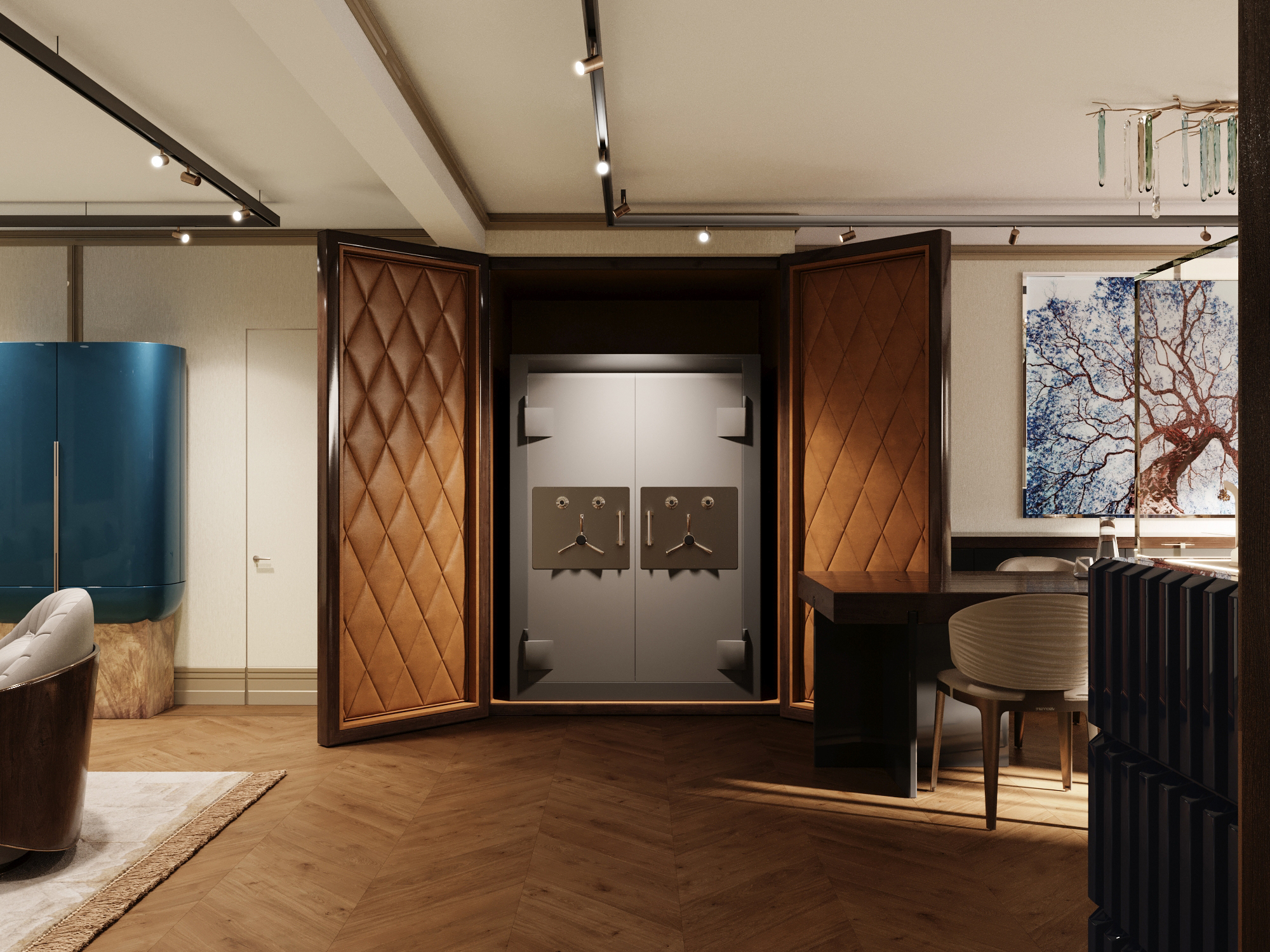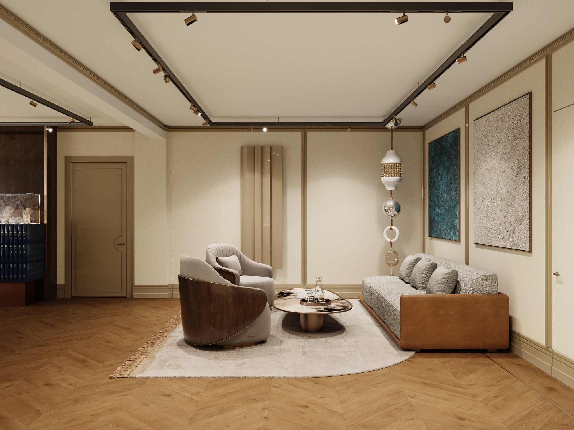 Das Cyprus-Projekt umfasste die vollständige Innenraumgestaltung eines Juwelier-Showrooms, der sich auf den Vertrieb von Edelsteinen an professionelle Juweliere spezialisiert. Der Arbeitsumfang erstreckte sich über die gesamte Ausstellungsfläche, einschließlich eines zentralen Präsentationsrings, eines speziell für dieses Projekt entwickelten, maßgefertigten Safes, der Büroräume und eines Gästebads.