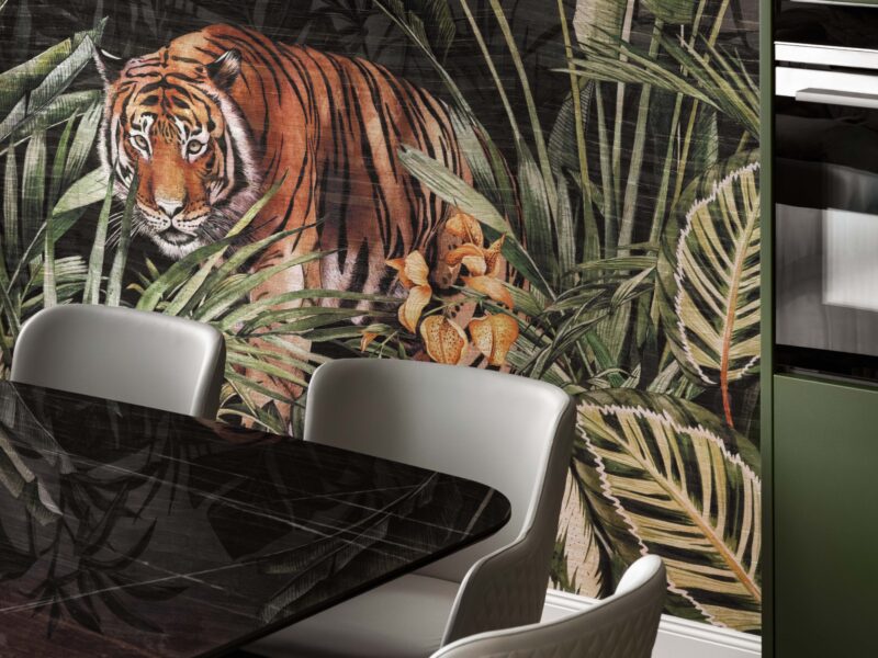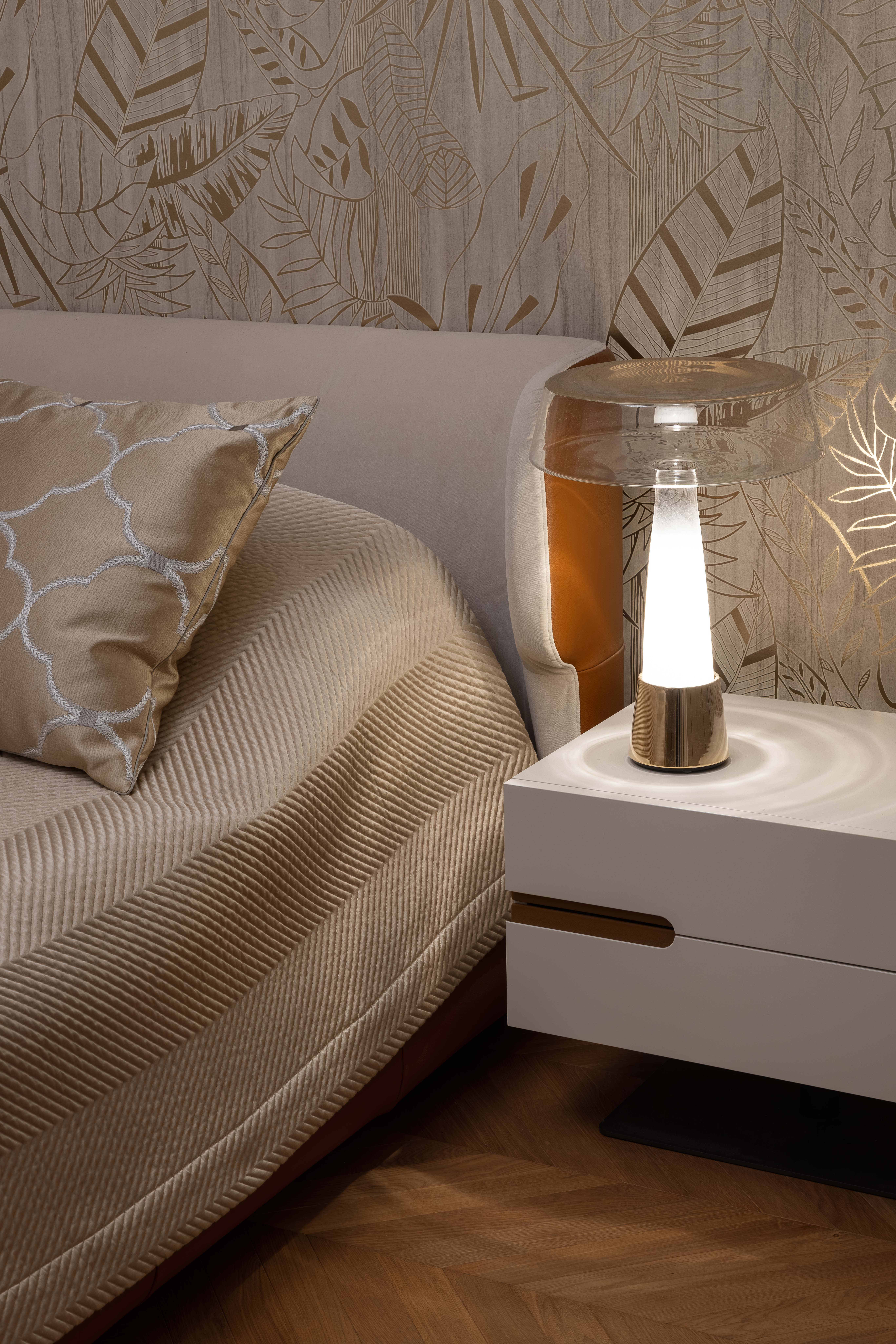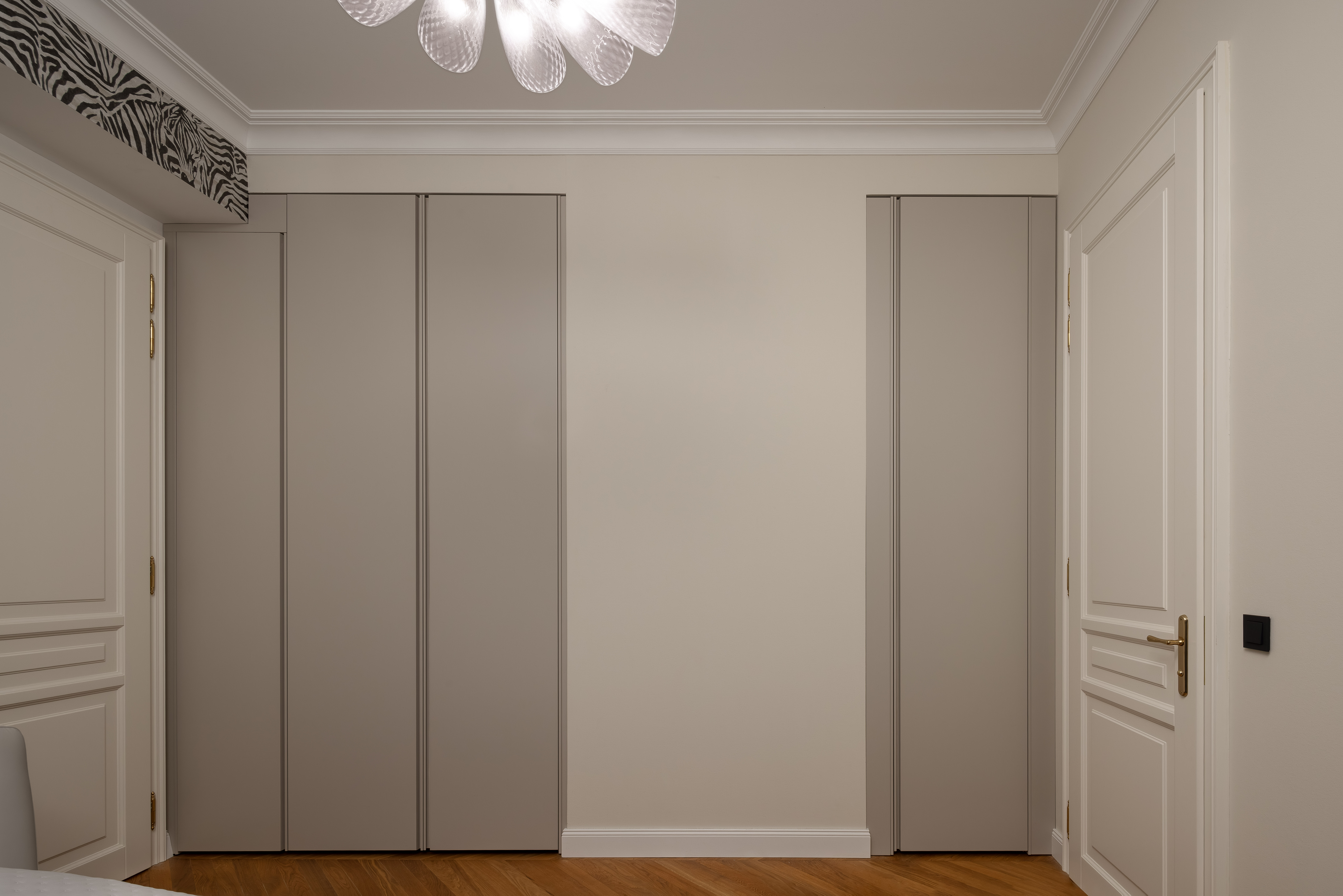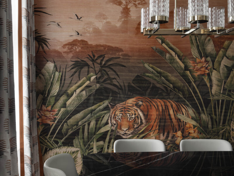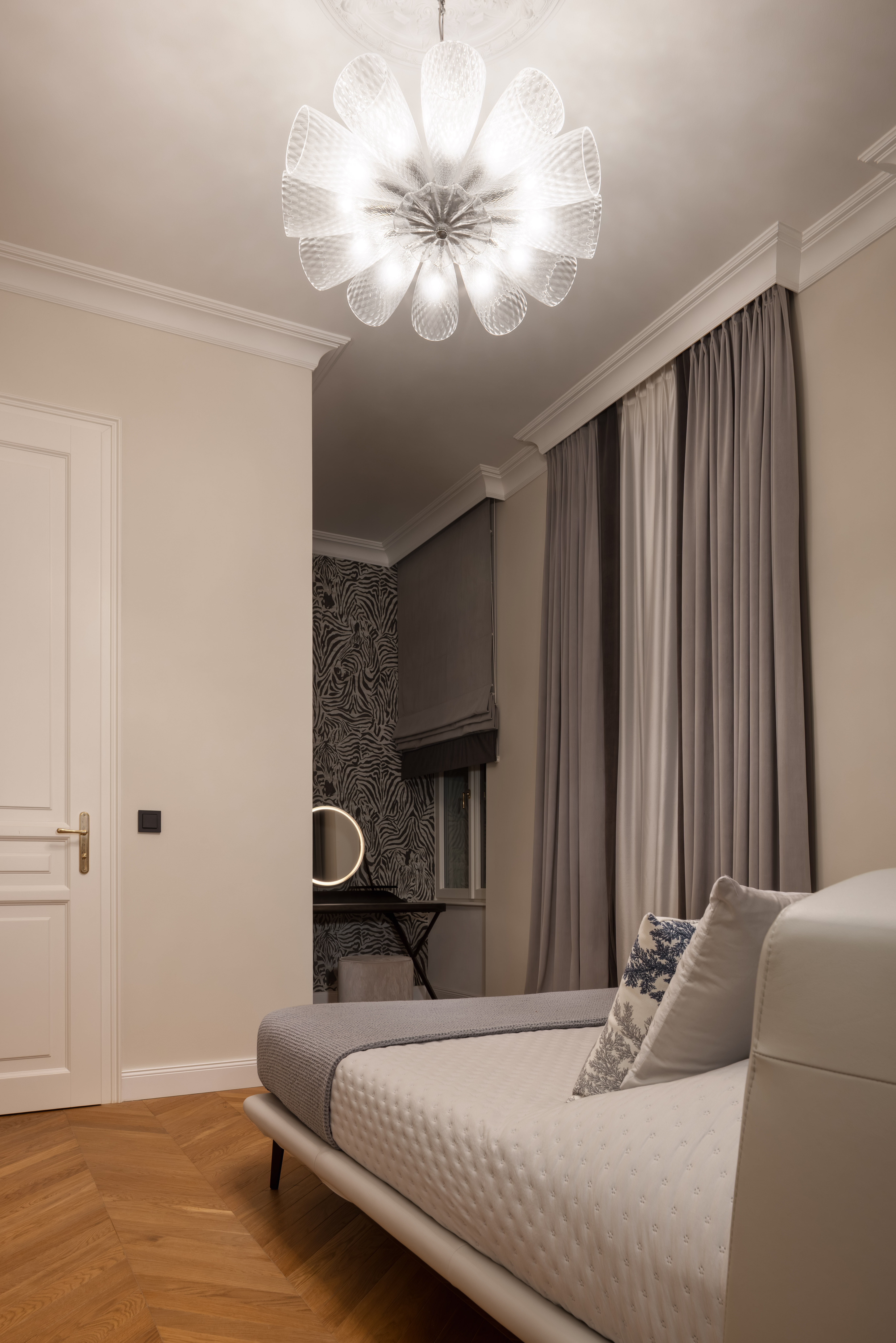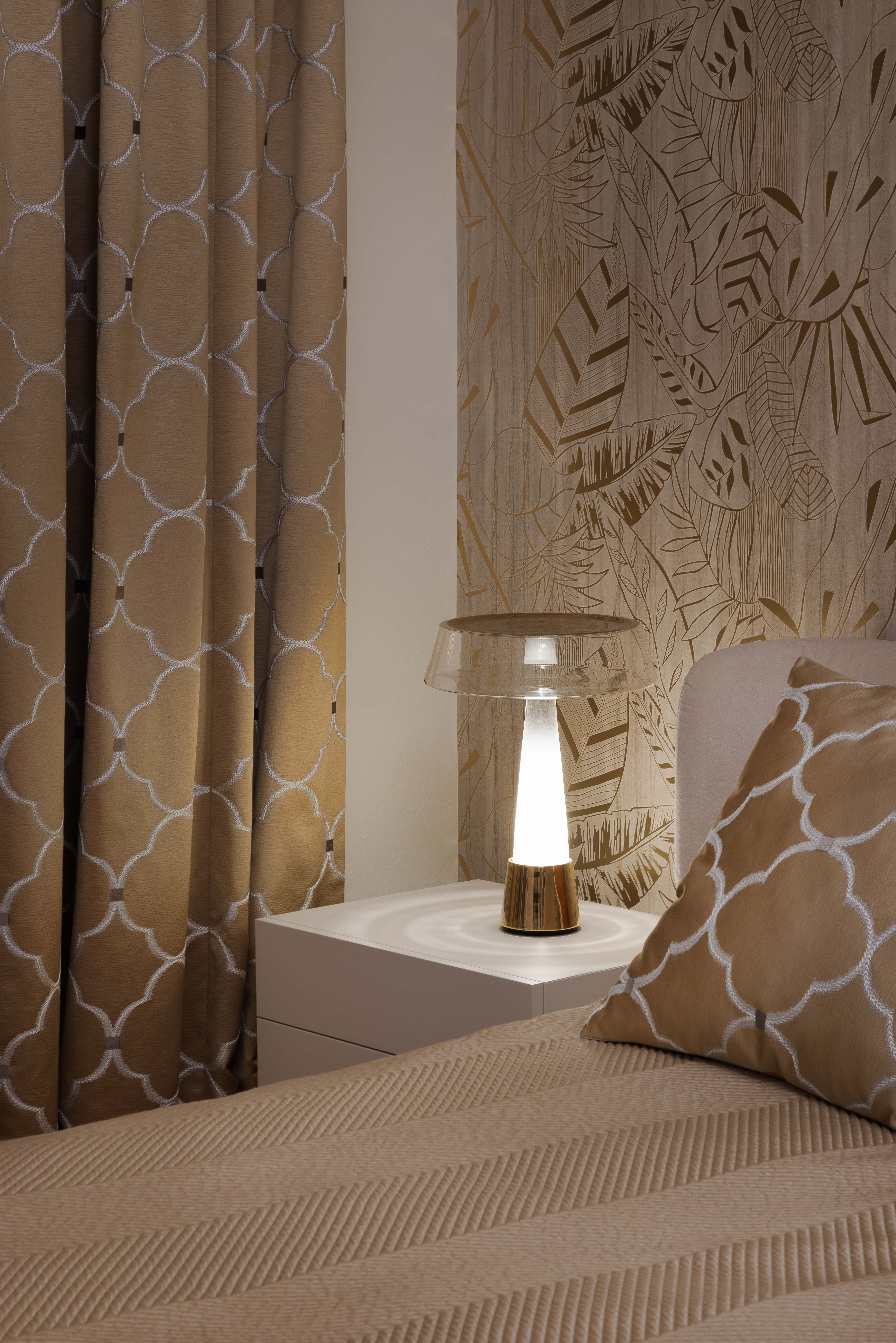Satte, warme Farbtöne, ausdrucksstarke Akzenttapeten und raffinierte, luxuriöse Einrichtungsgegenstände schaffen eine unverwechselbare und einladende Atmosphäre in der gesamten Wohnung.