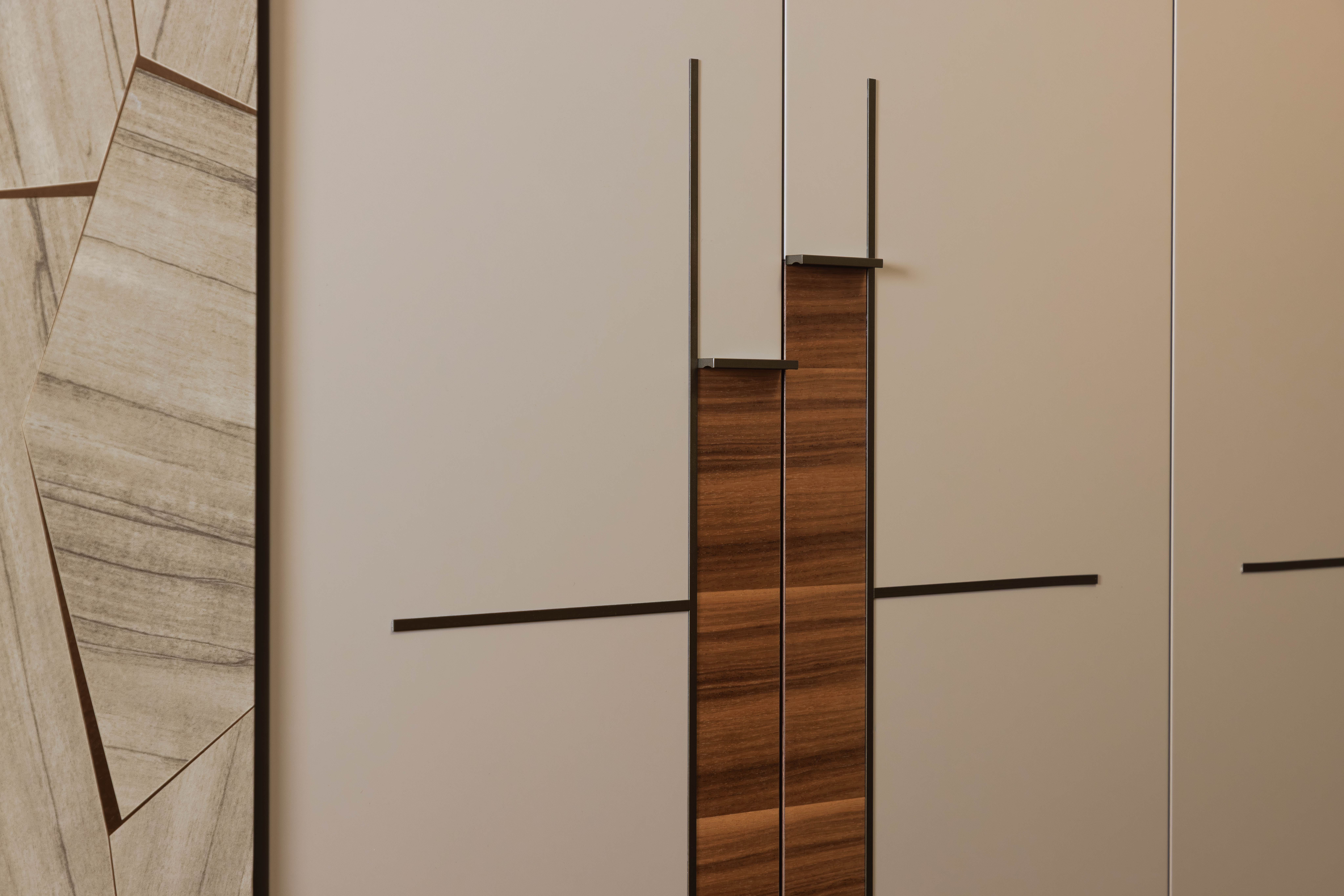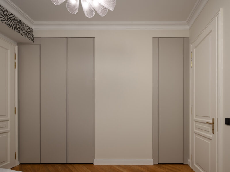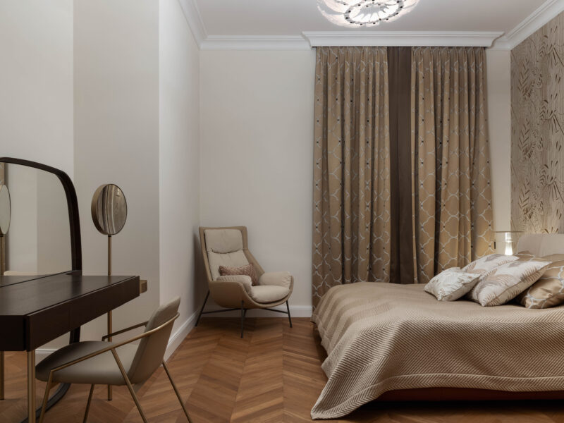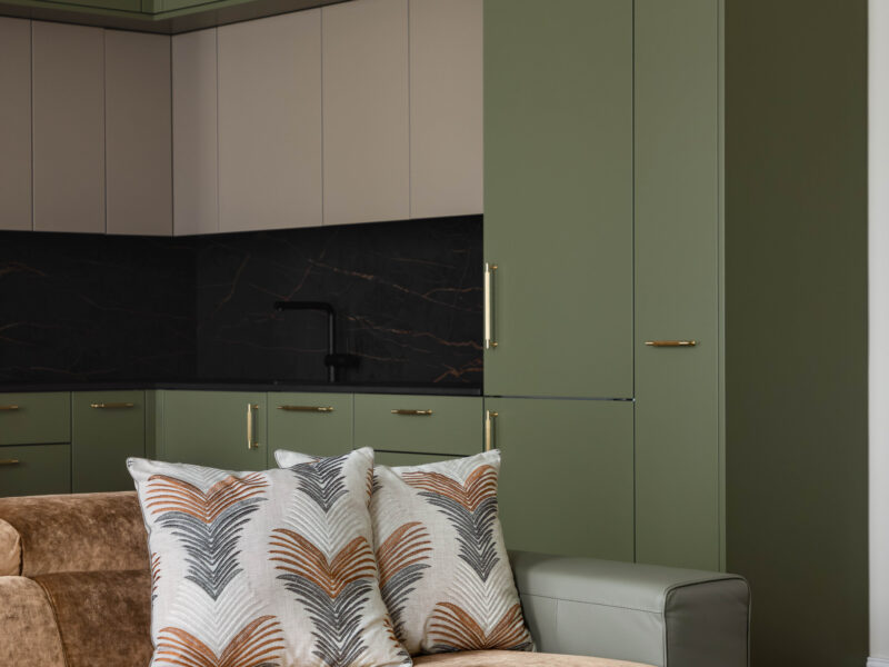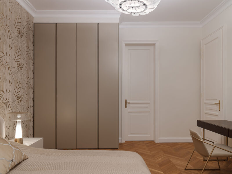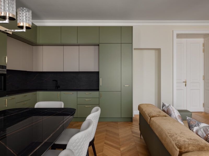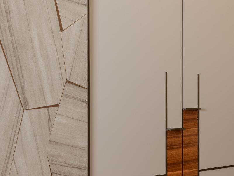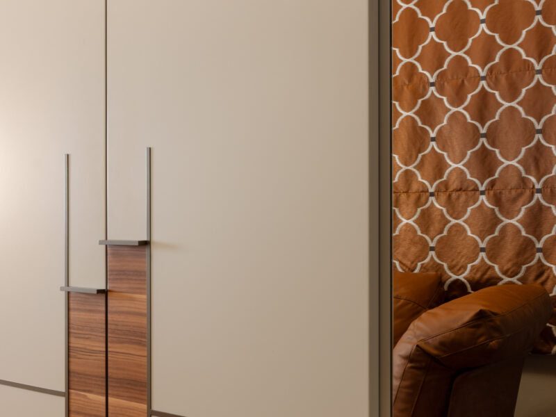Für dieses Projekt fertigte Arevente & Partner maßgeschneiderte Einbauten – von maßgefertigten Kleiderschränken bis hin zu einer nahtlos integrierten Küche –, wobei jedes Stück sorgfältig so gestaltet wurde, dass es sich harmonisch in den Raum einfügt und gleichzeitig maximal funktional und benutzerfreundlich ist.