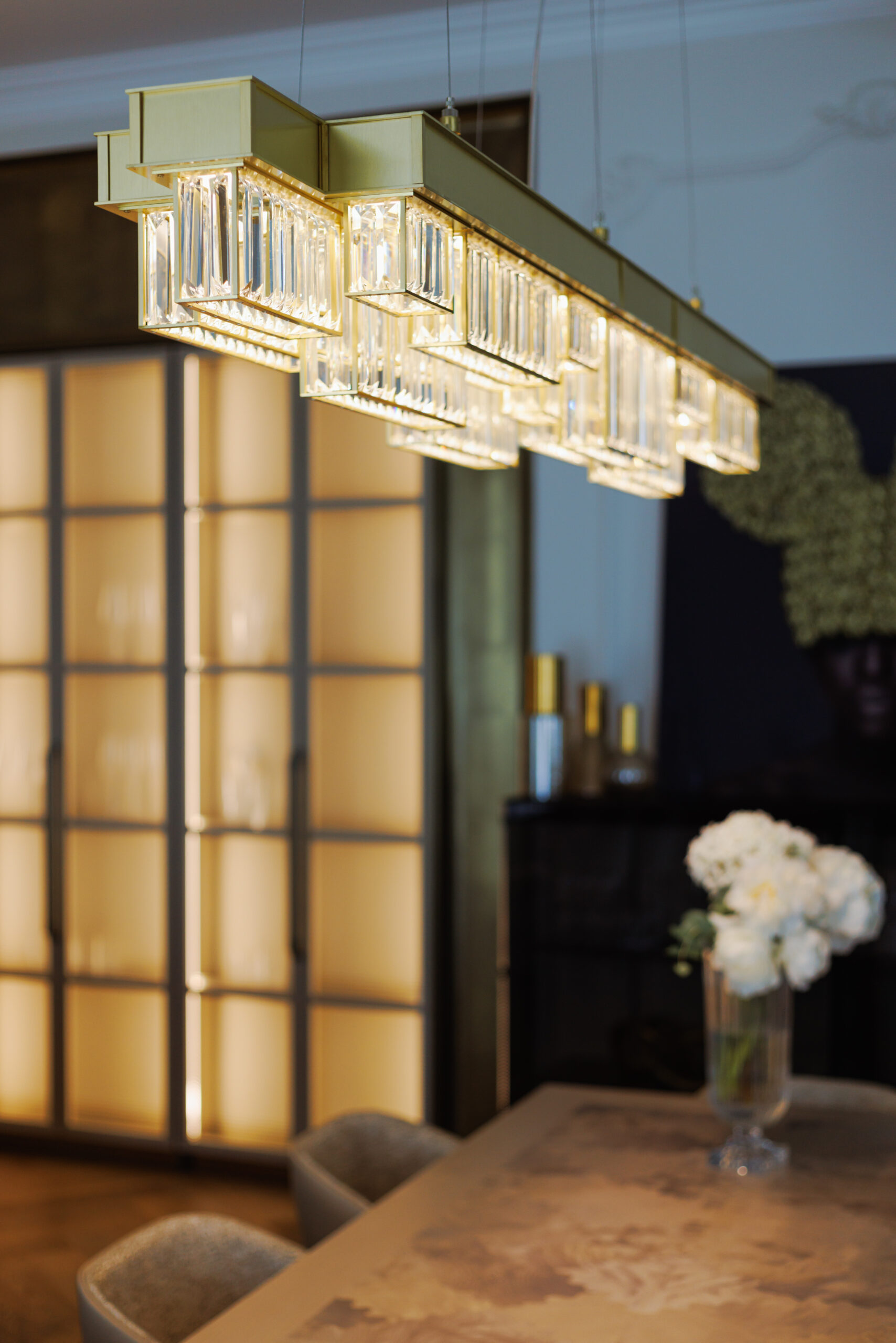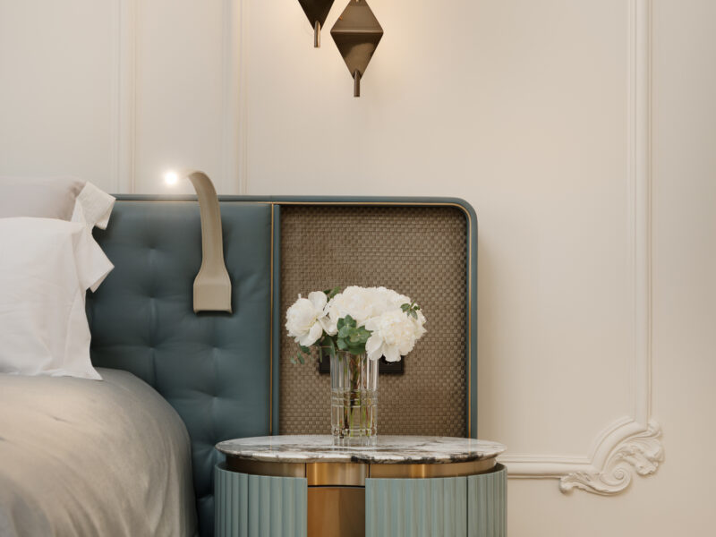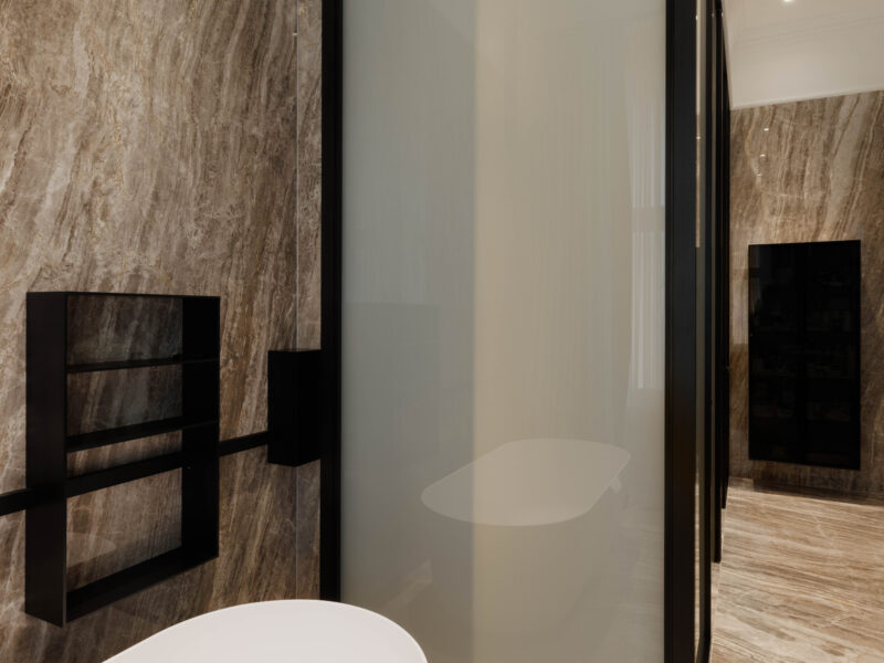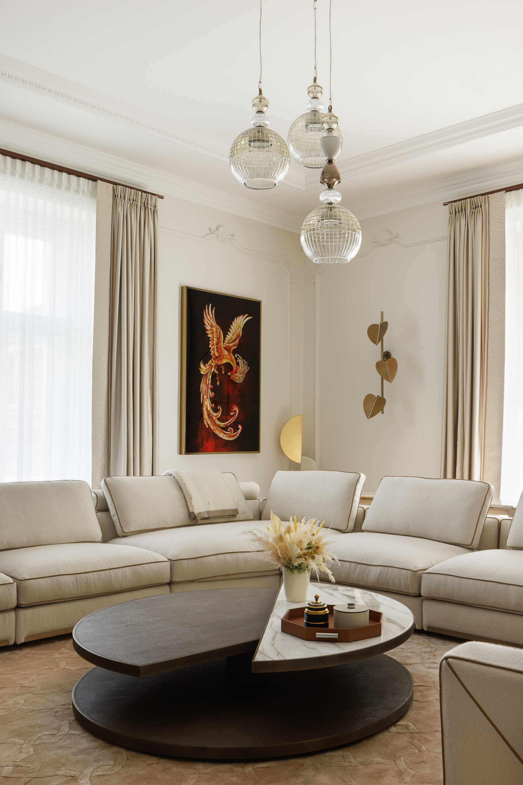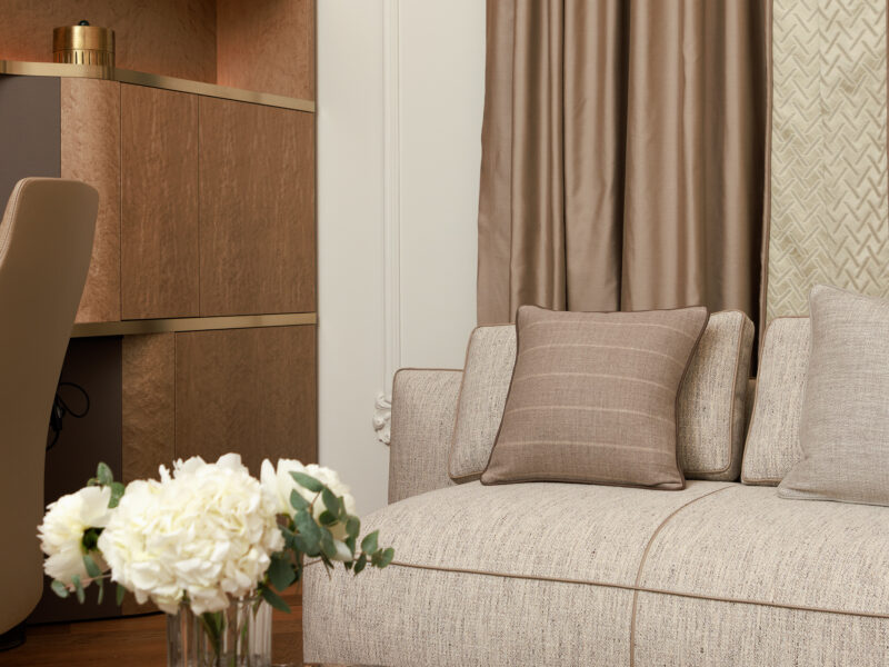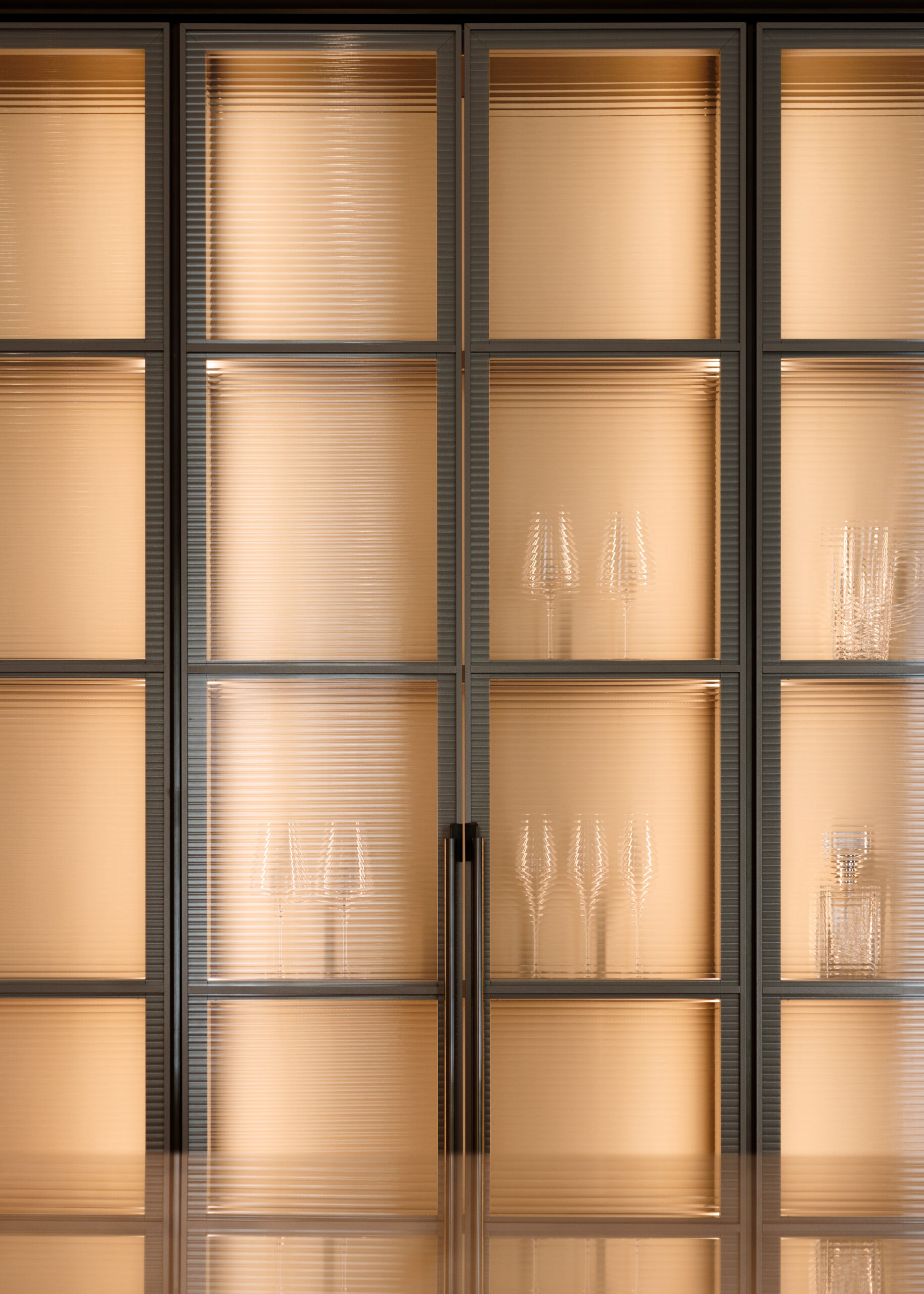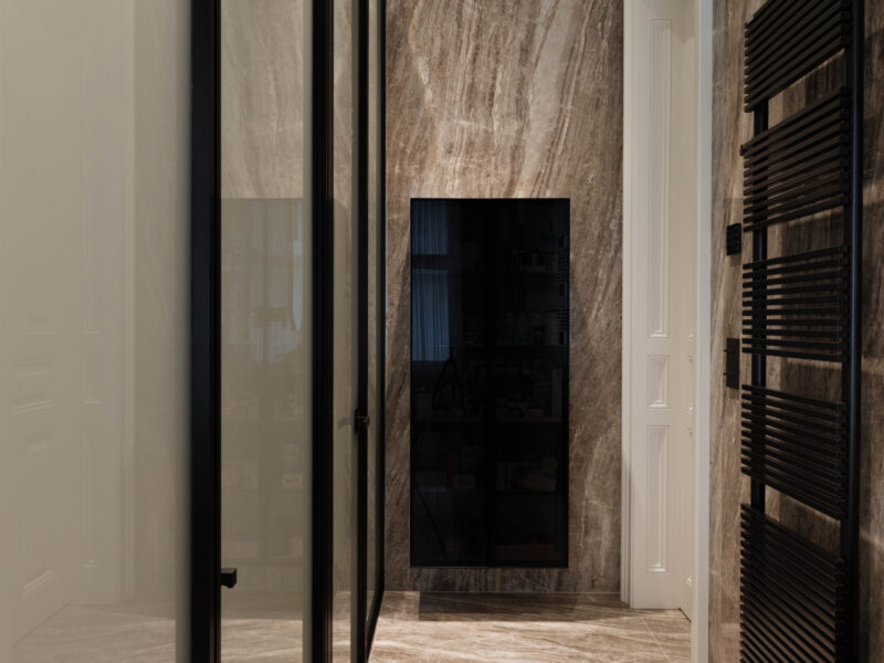 Für dieses Projekt wurden Möbel von Visionnaire sorgfältig ausgewählt und durch eine Reihe von speziell für diesen Raum angefertigten Elementen ergänzt. Zu den wichtigsten Sonderanfertigungen zählen die integrierten Küchenschränke und ein maßgeschneiderter Regalschrank für das Homeoffice, die beide Funktionalität mit architektonischer Raffinesse verbinden.