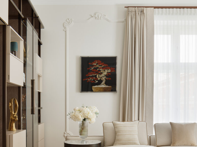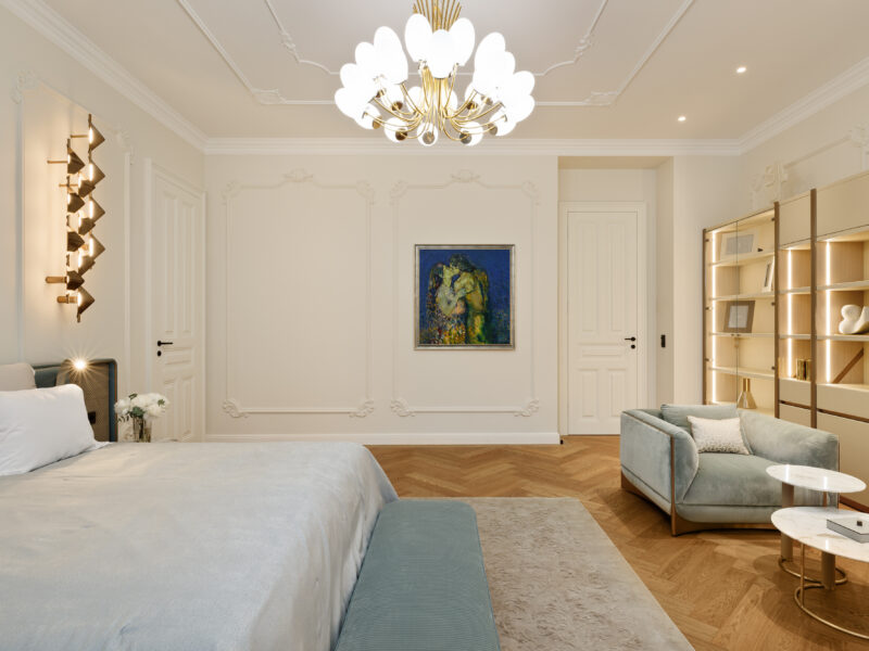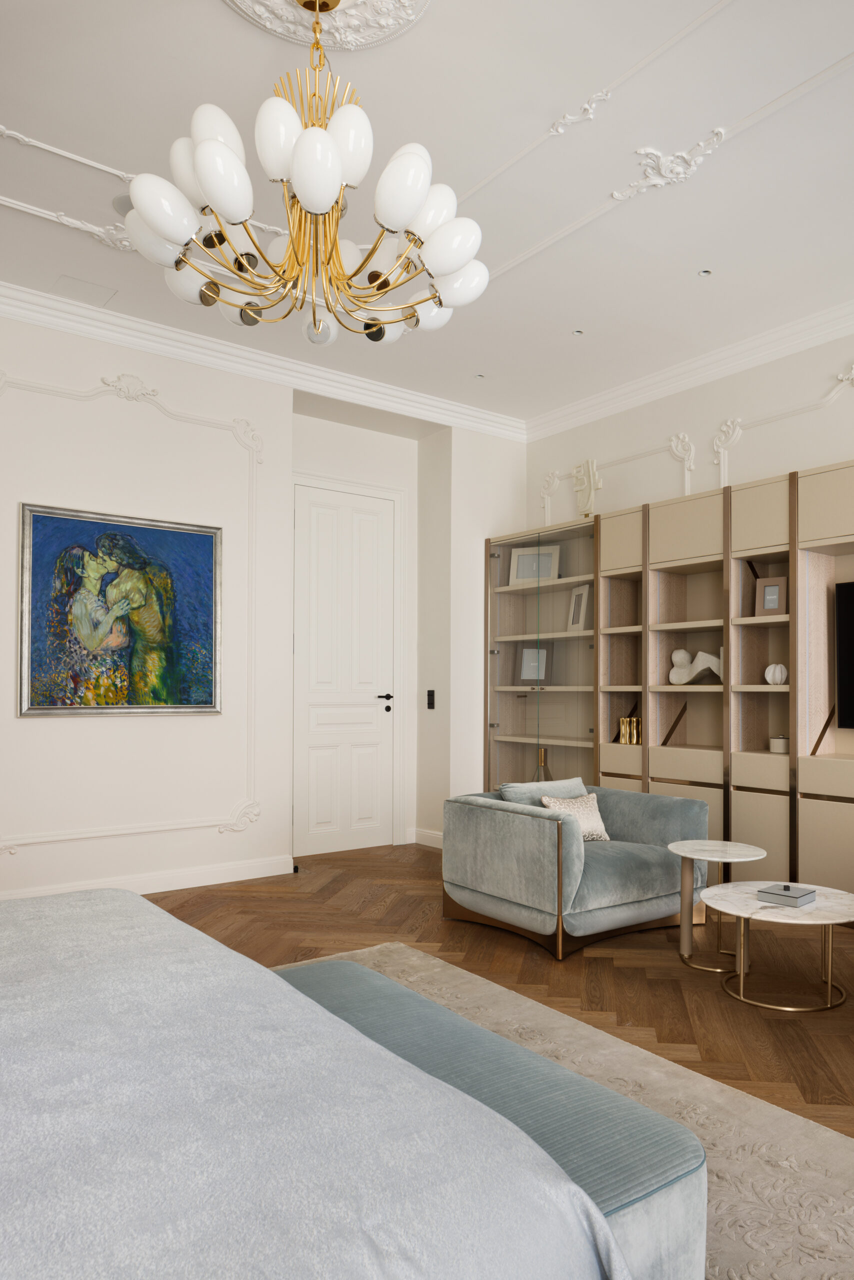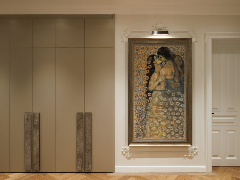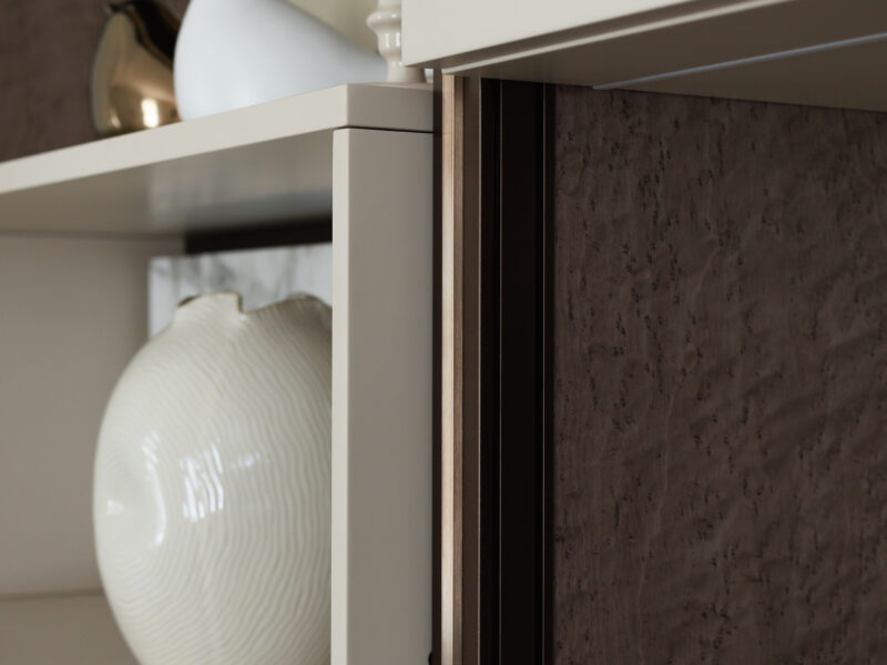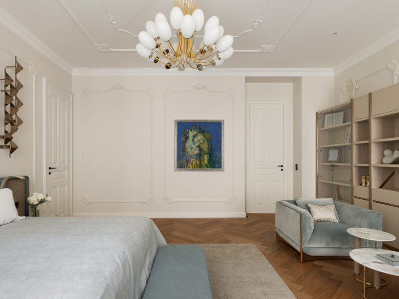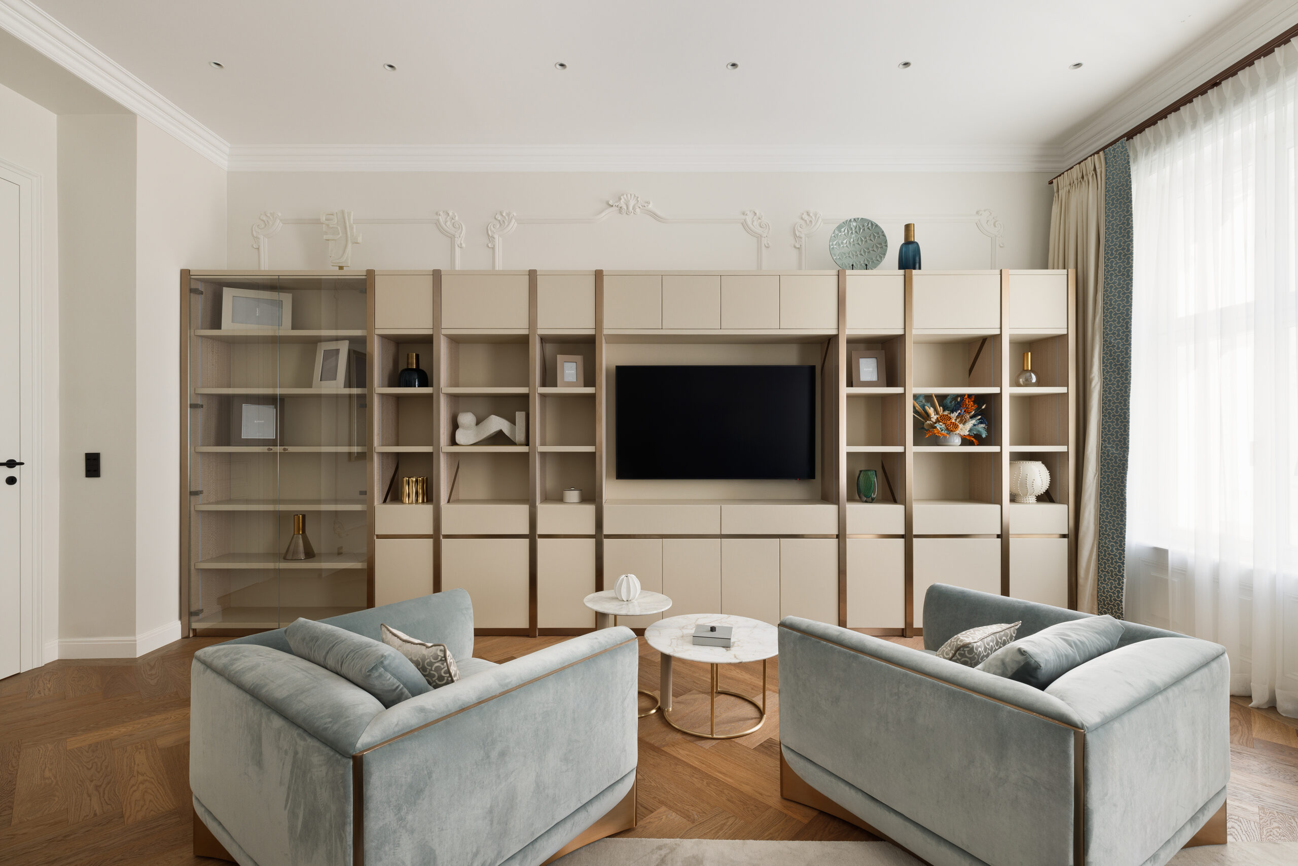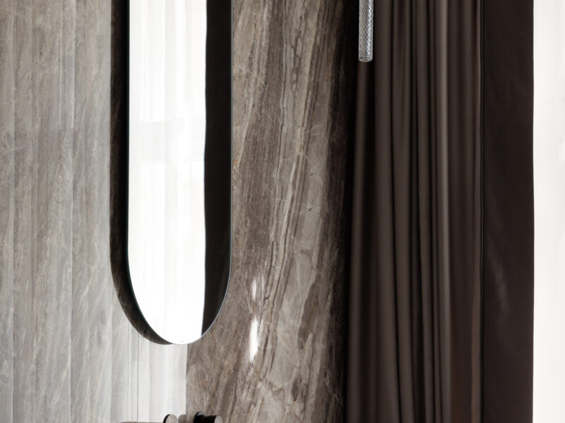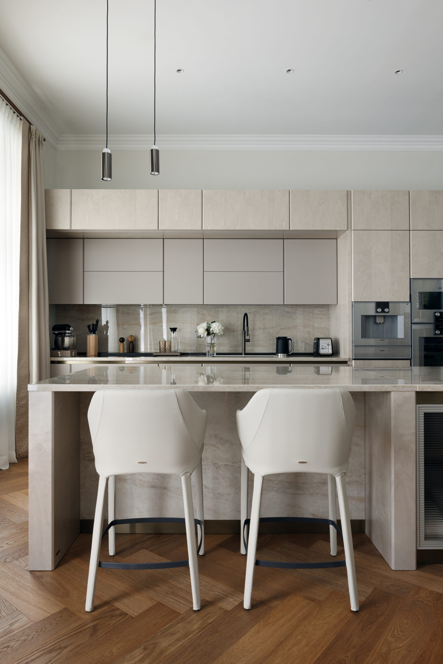 Für dieses Projekt wurden Möbel von Visionnaire sorgfältig ausgewählt und durch eine Reihe von speziell für diesen Raum angefertigten Elementen ergänzt. Zu den wichtigsten Sonderanfertigungen zählen die integrierten Küchenschränke und ein maßgeschneiderter Regalschrank für das Homeoffice, die beide Funktionalität mit architektonischer Raffinesse verbinden.