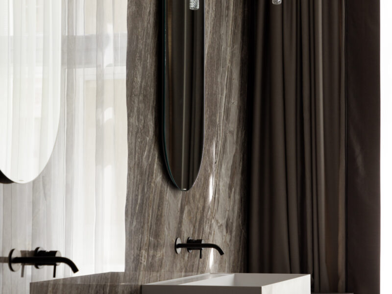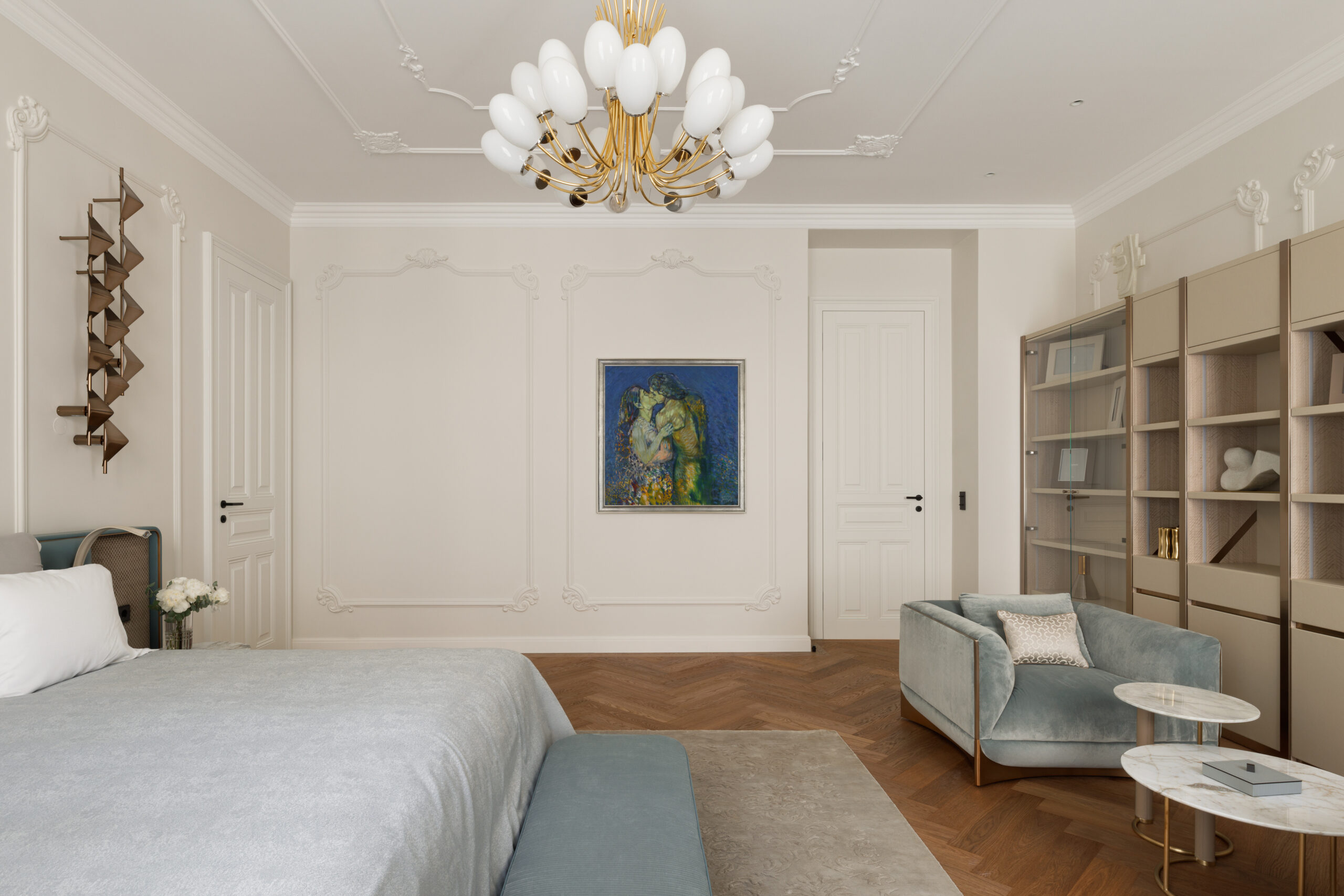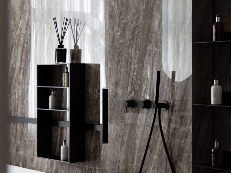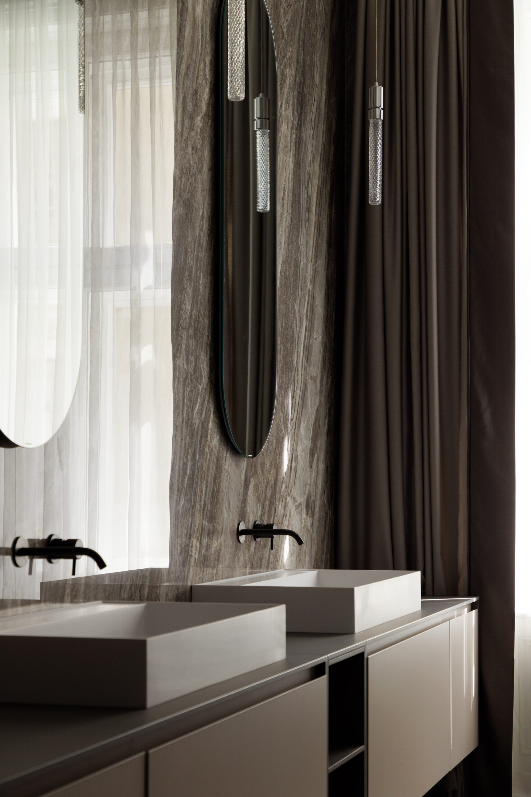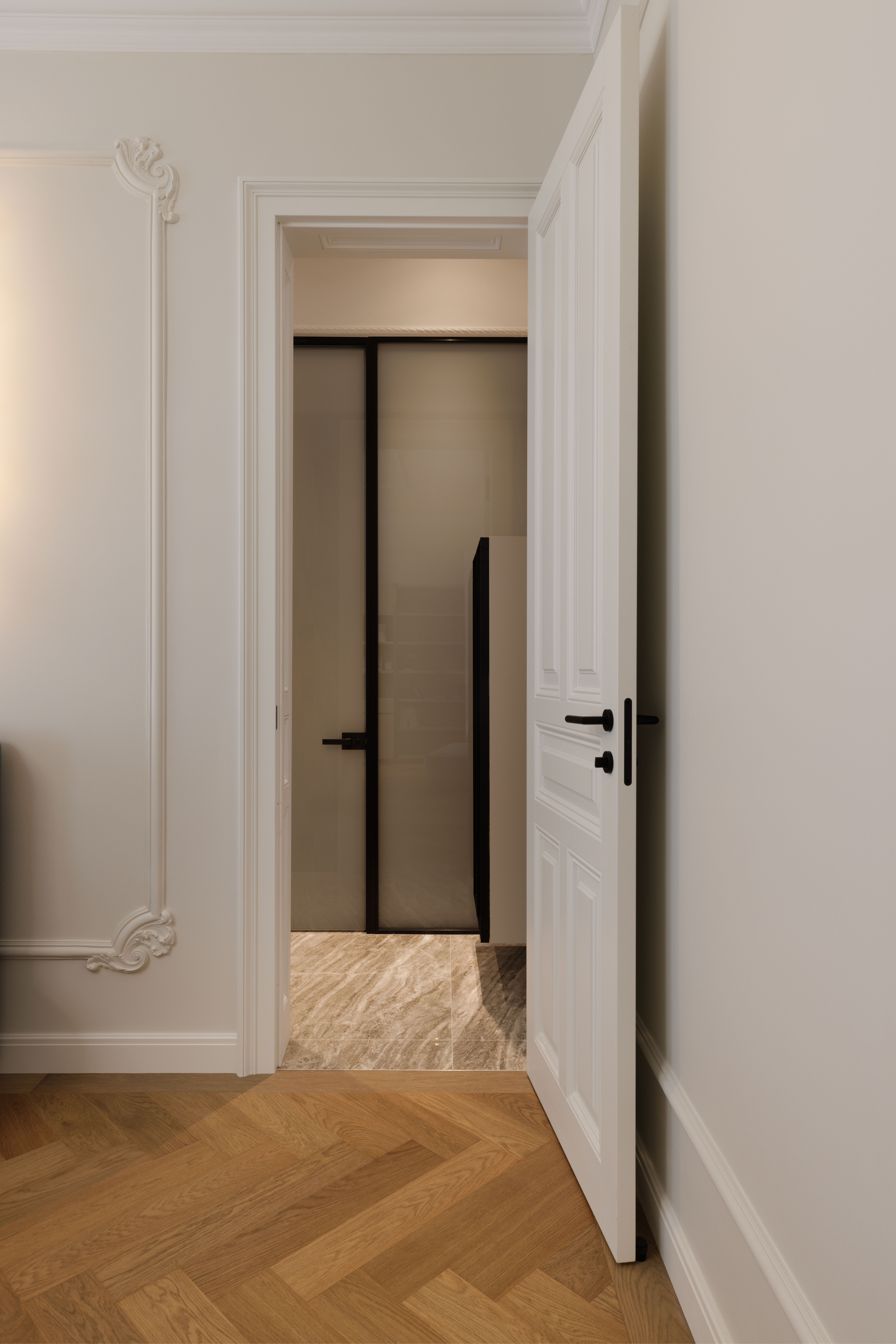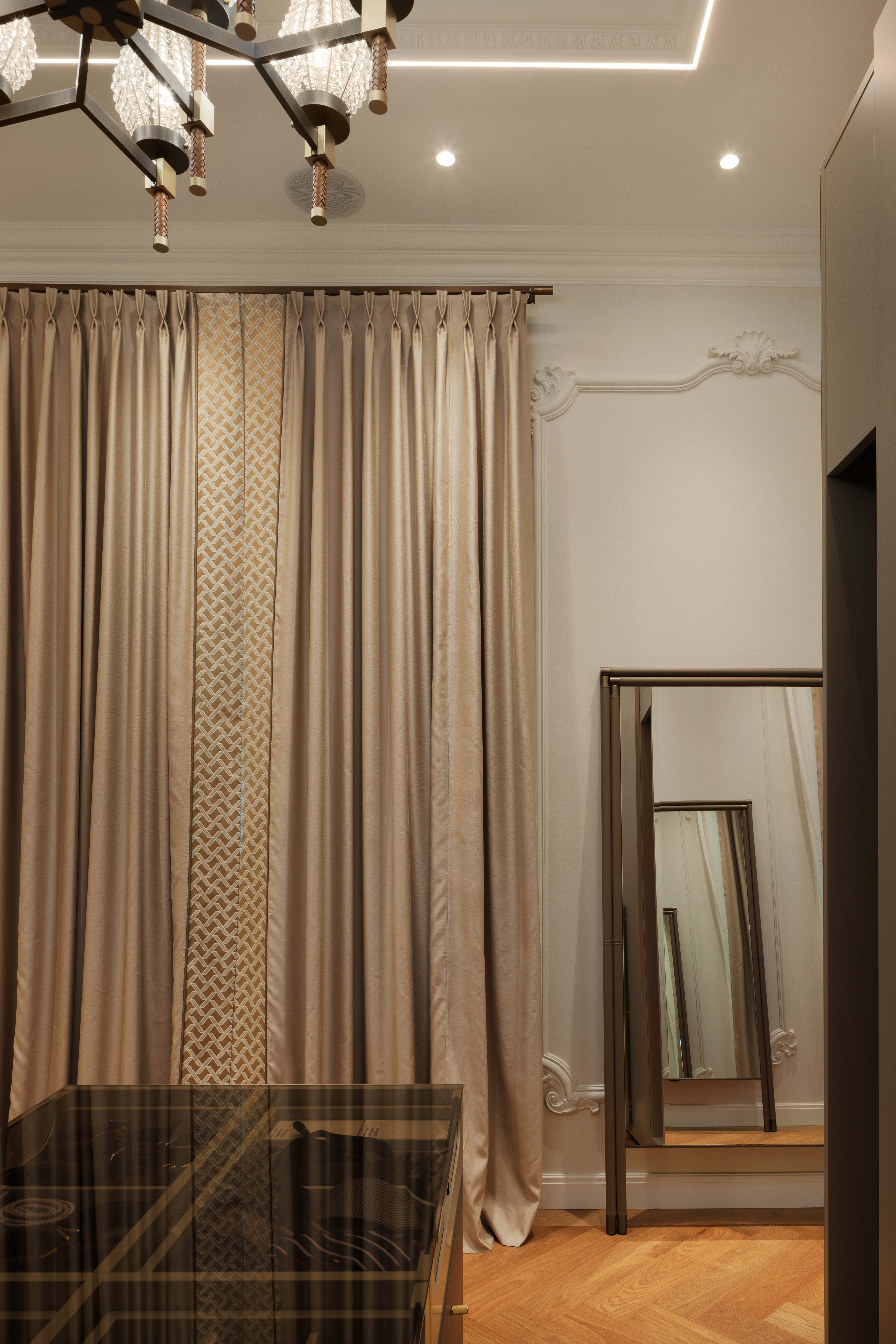 Für dieses Projekt wurden Möbel von Visionnaire sorgfältig ausgewählt und durch eine Reihe von speziell für diesen Raum angefertigten Elementen ergänzt. Zu den wichtigsten Sonderanfertigungen zählen die integrierten Küchenschränke und ein maßgeschneiderter Regalschrank für das Homeoffice, die beide Funktionalität mit architektonischer Raffinesse verbinden.
