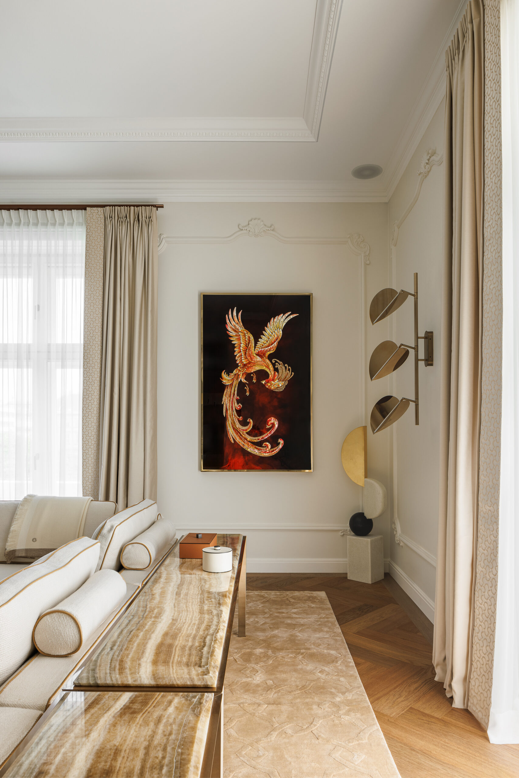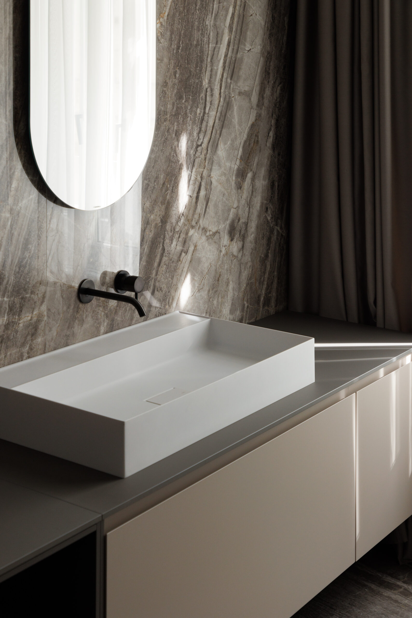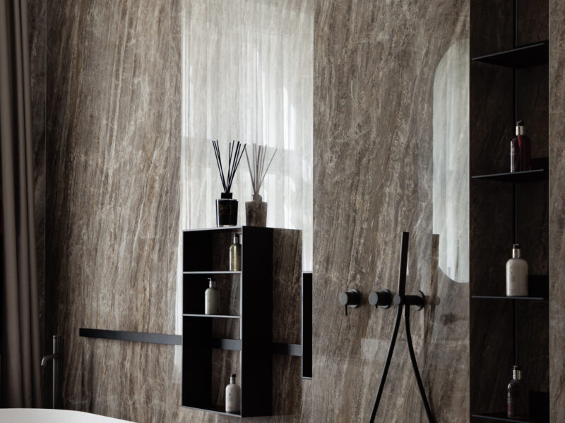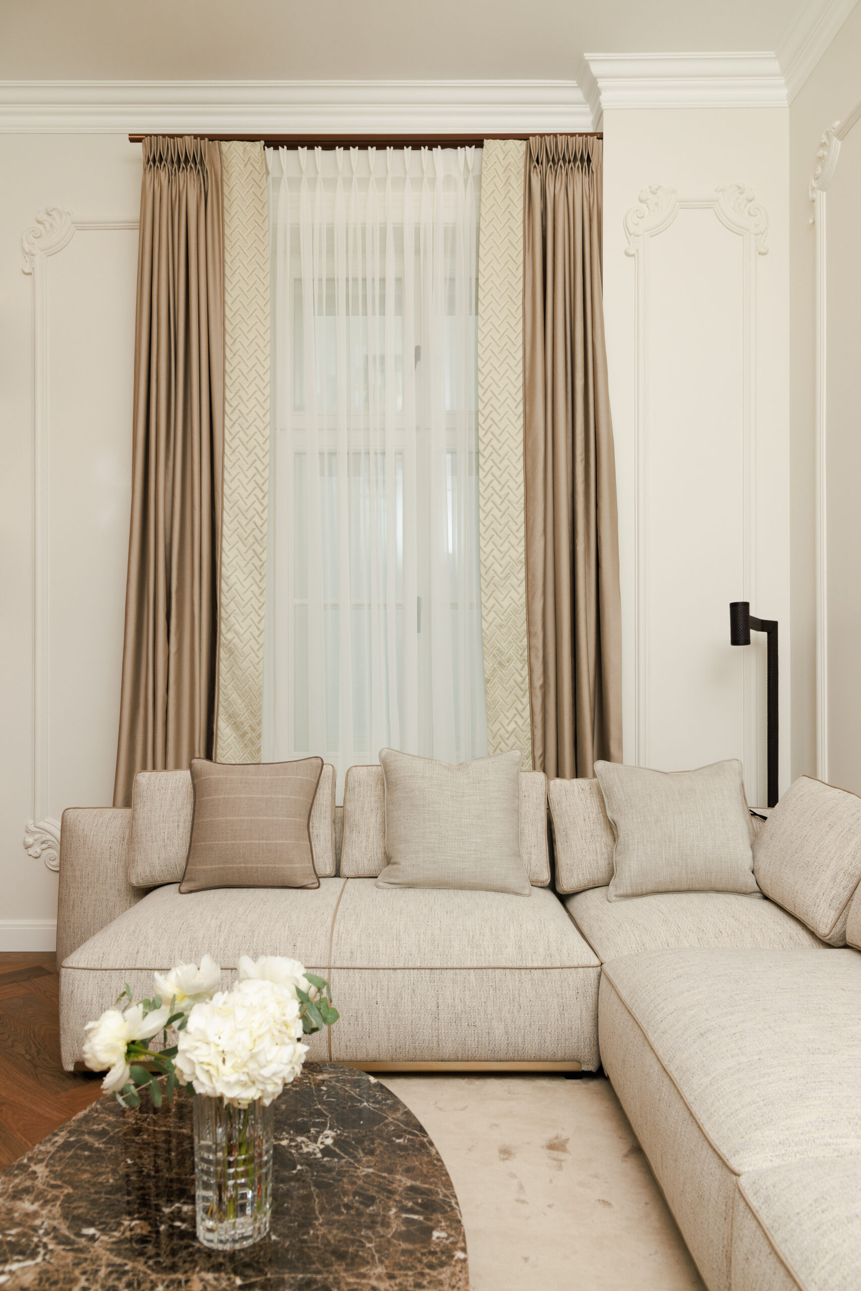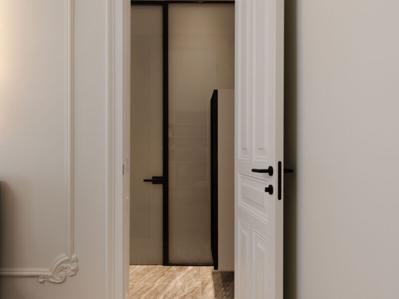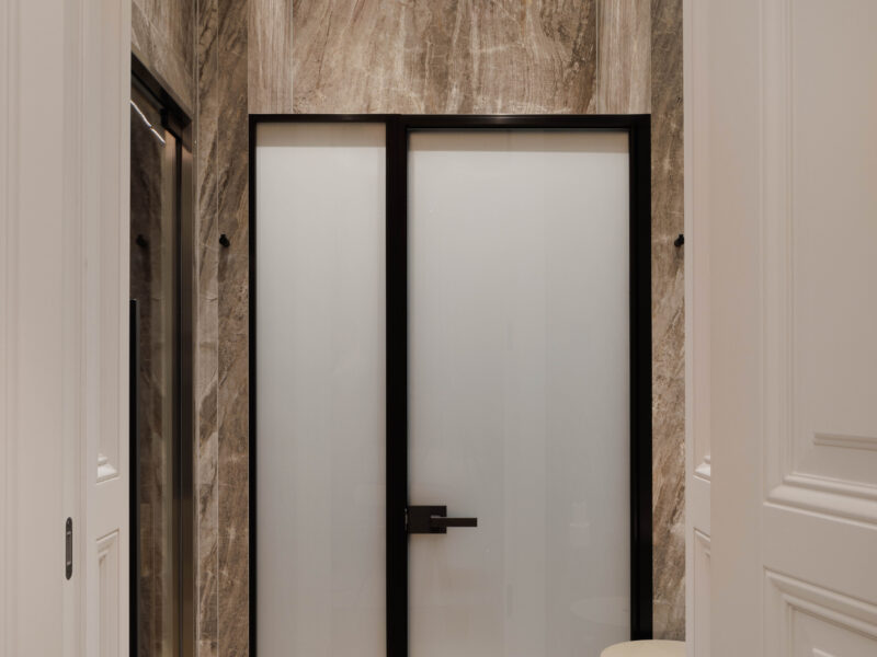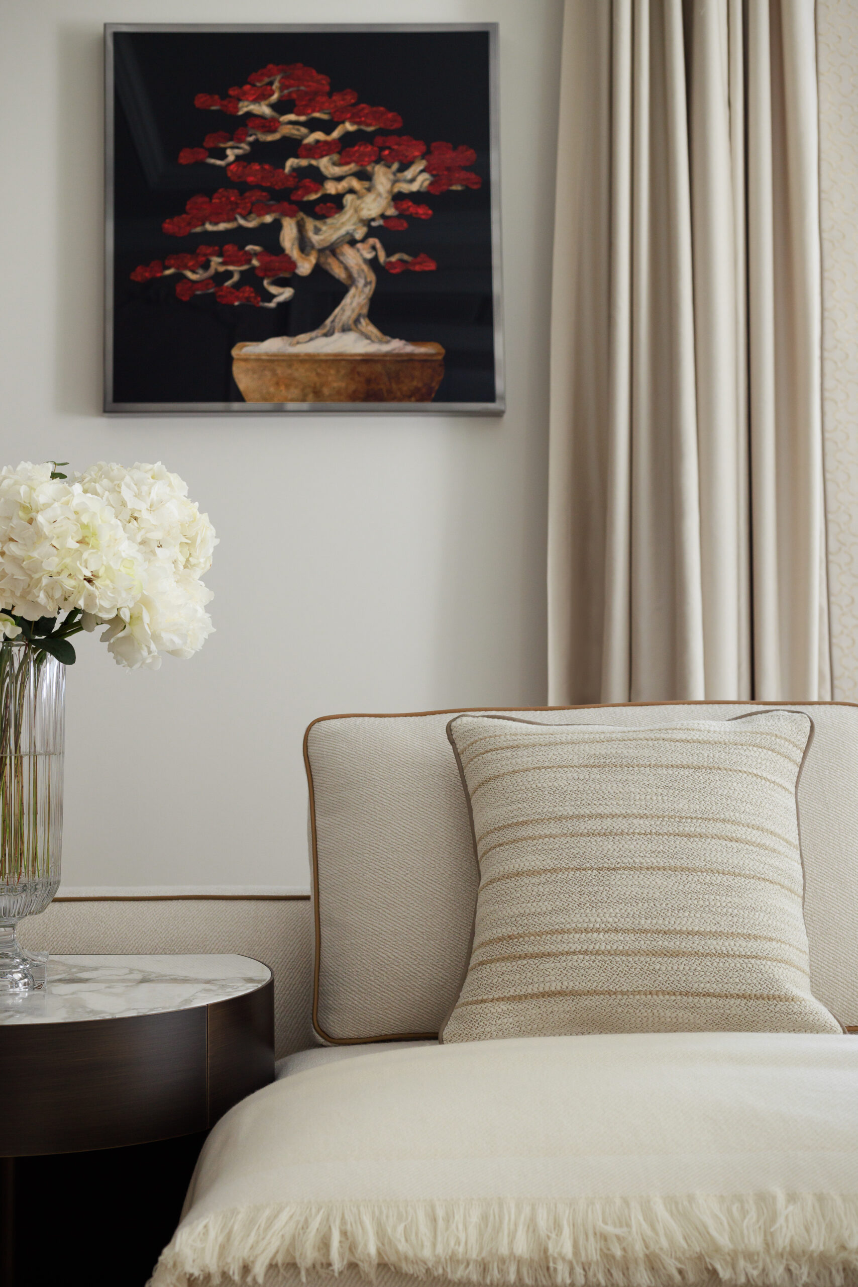 Für dieses Projekt wurden Möbel von Visionnaire sorgfältig ausgewählt und durch eine Reihe von speziell für diesen Raum angefertigten Elementen ergänzt. Zu den wichtigsten Sonderanfertigungen zählen die integrierten Küchenschränke und ein maßgeschneiderter Regalschrank für das Homeoffice, die beide Funktionalität mit architektonischer Raffinesse verbinden.