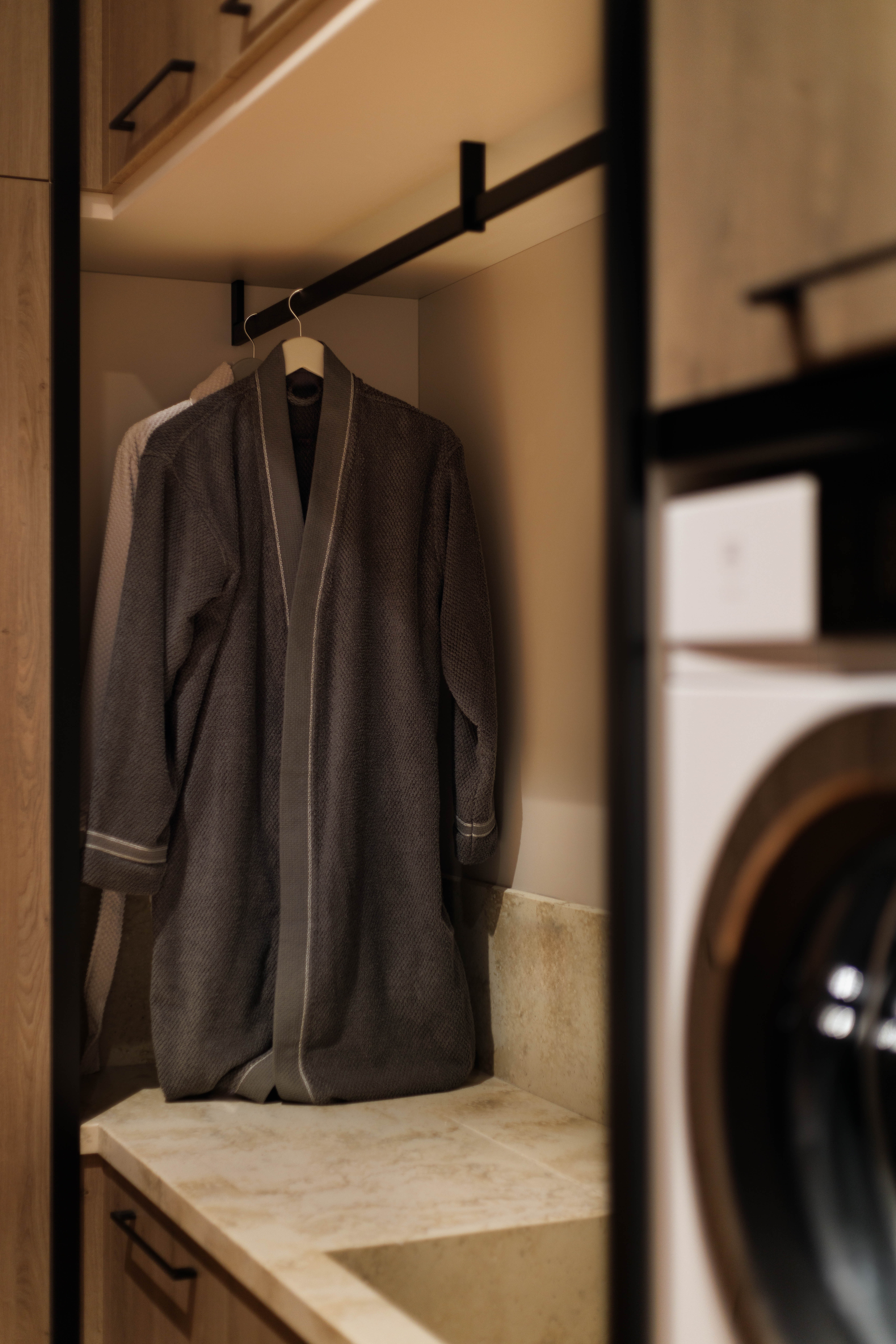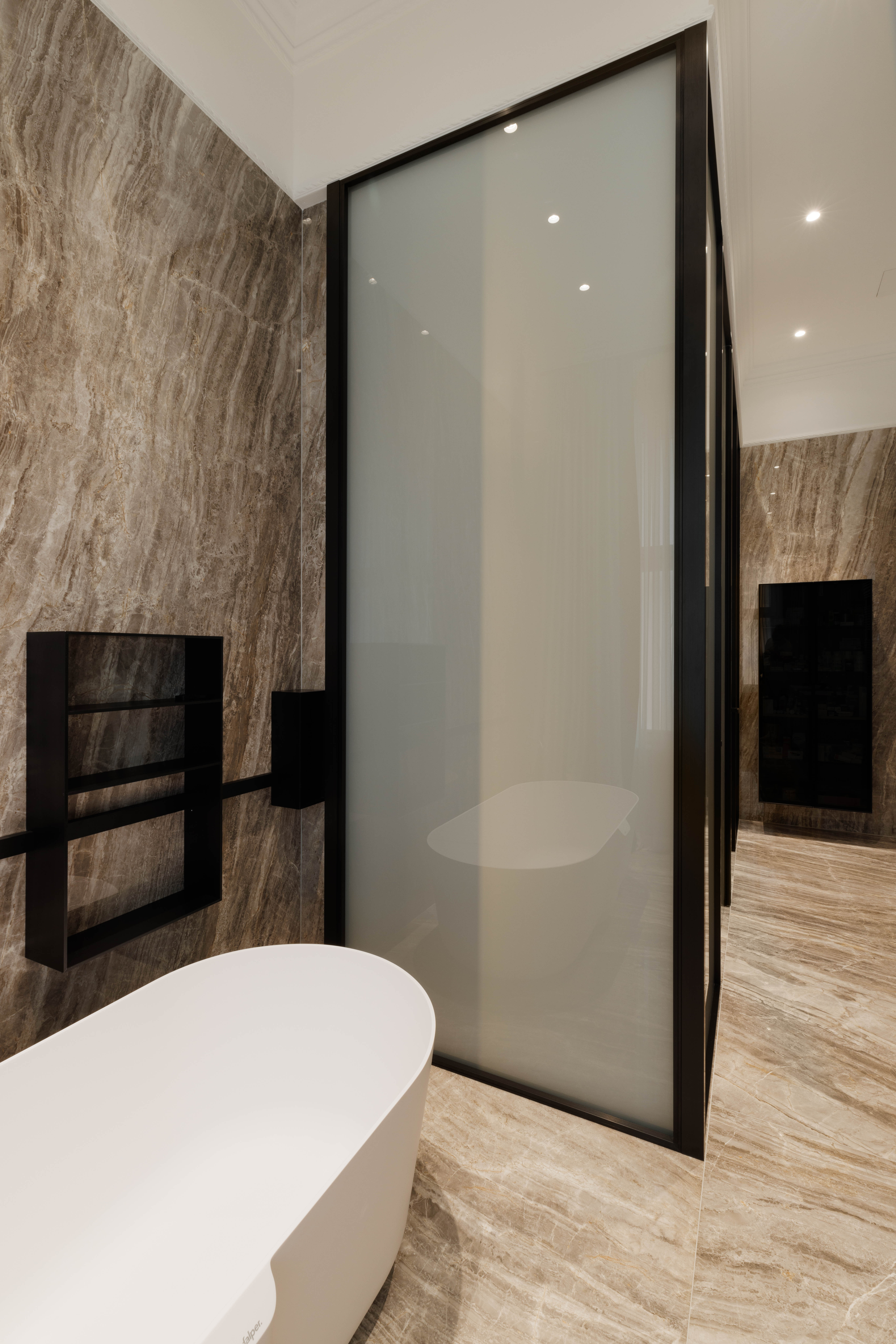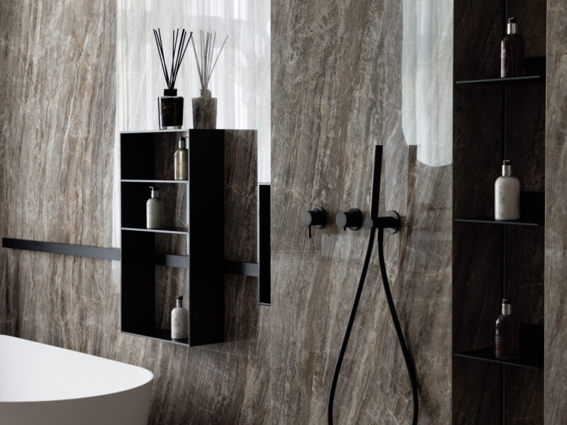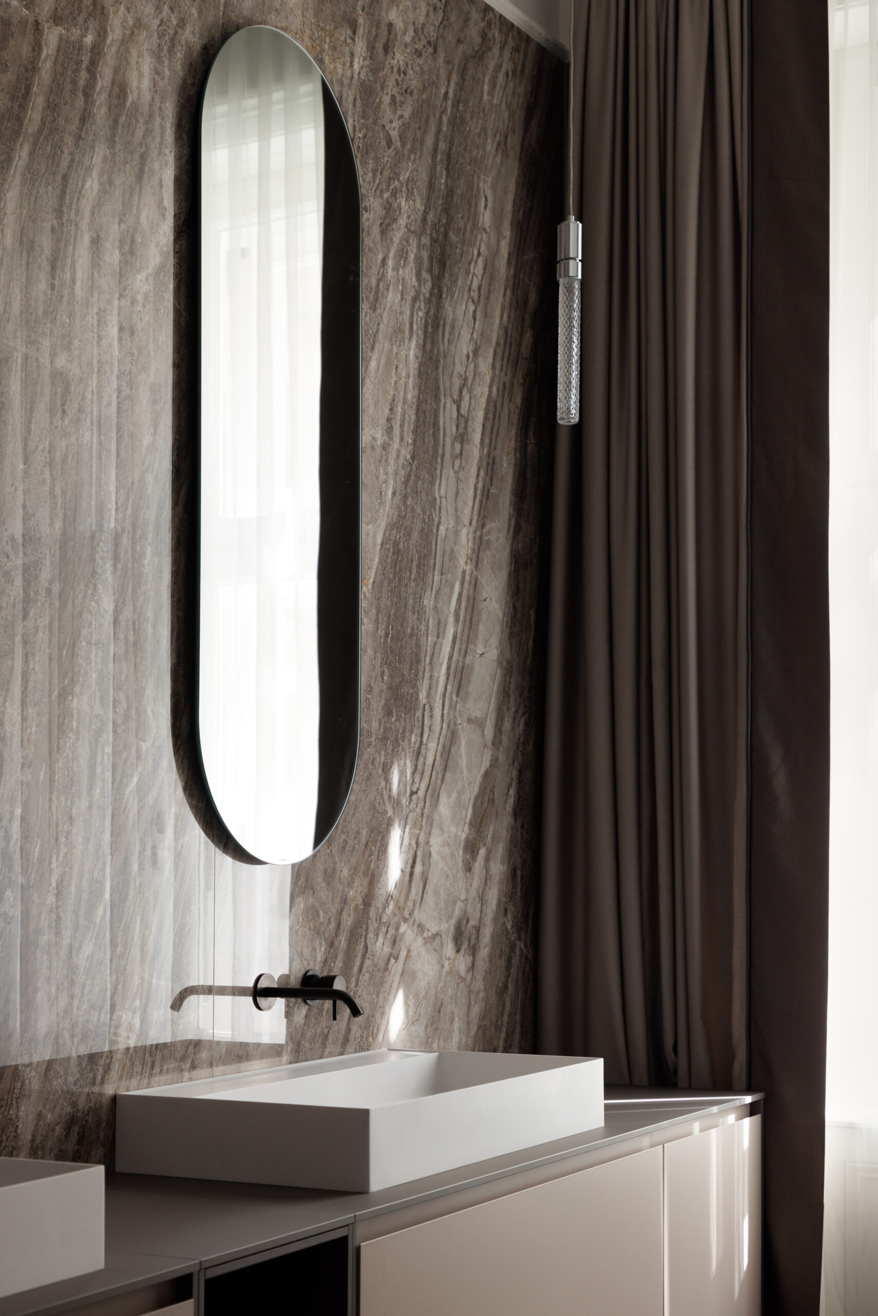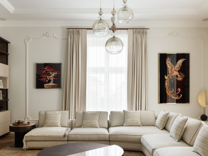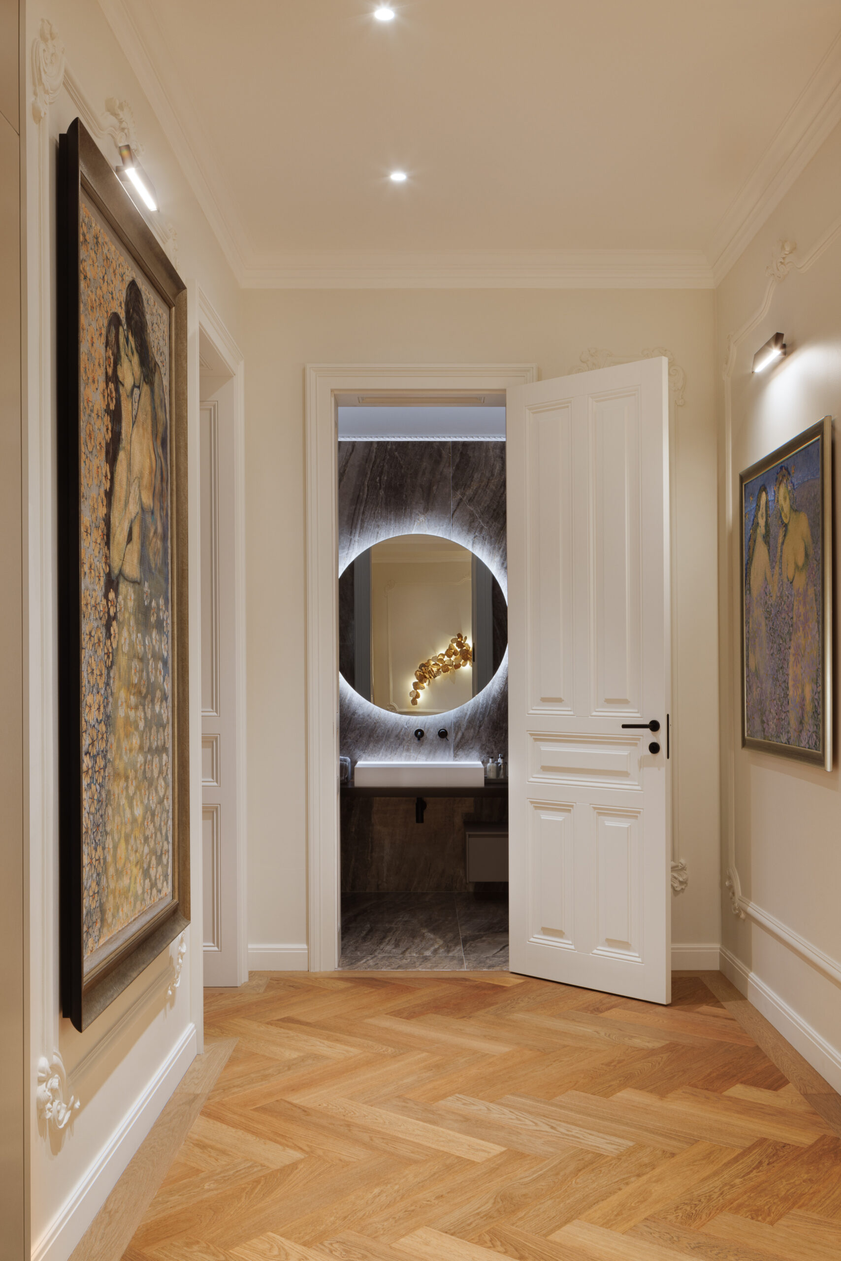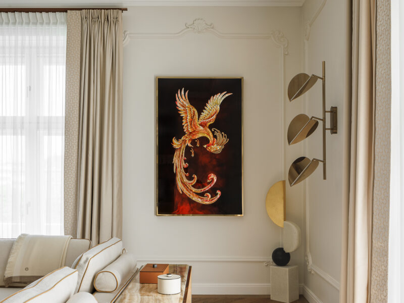 Für dieses Projekt wurden Möbel von Visionnaire sorgfältig ausgewählt und durch eine Reihe von speziell für diesen Raum angefertigten Elementen ergänzt. Zu den wichtigsten Sonderanfertigungen zählen die integrierten Küchenschränke und ein maßgeschneiderter Regalschrank für das Homeoffice, die beide Funktionalität mit architektonischer Raffinesse verbinden.