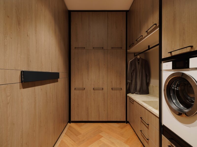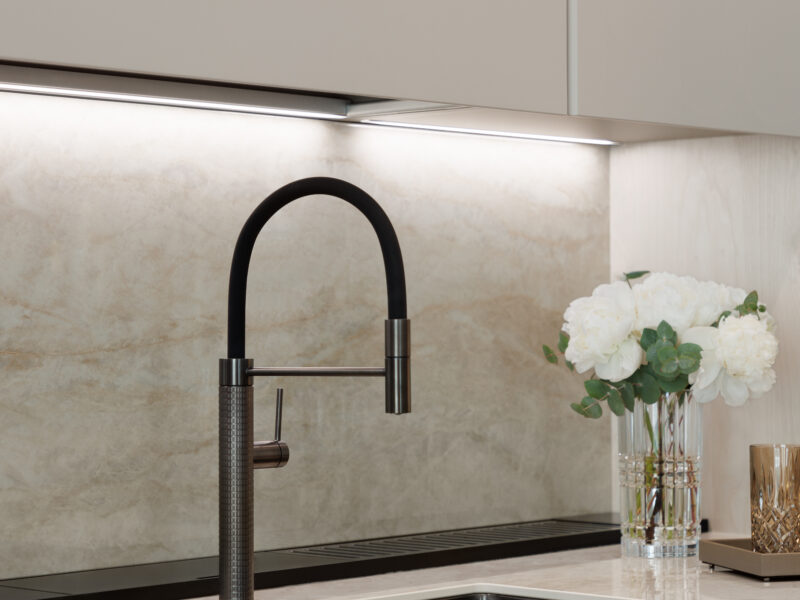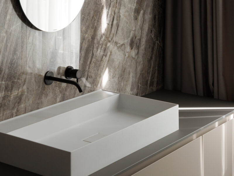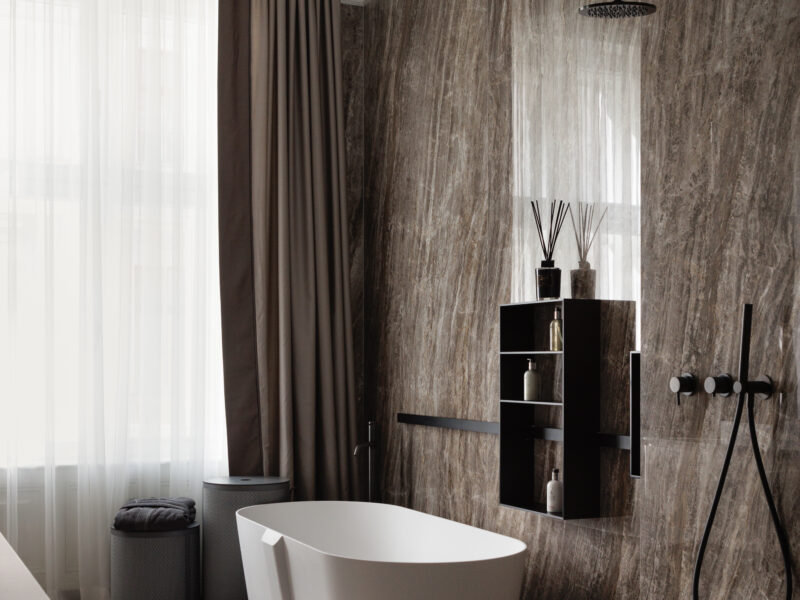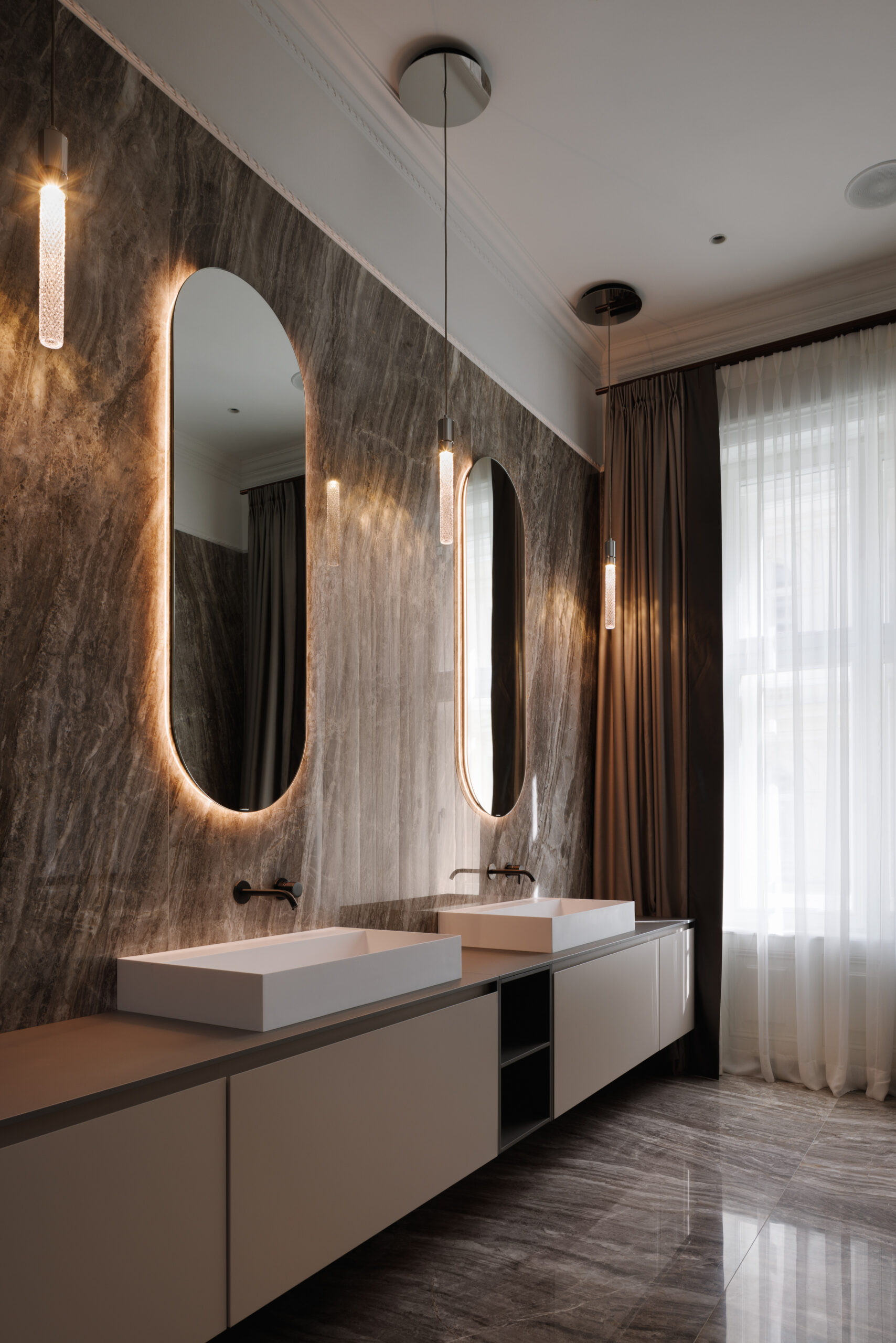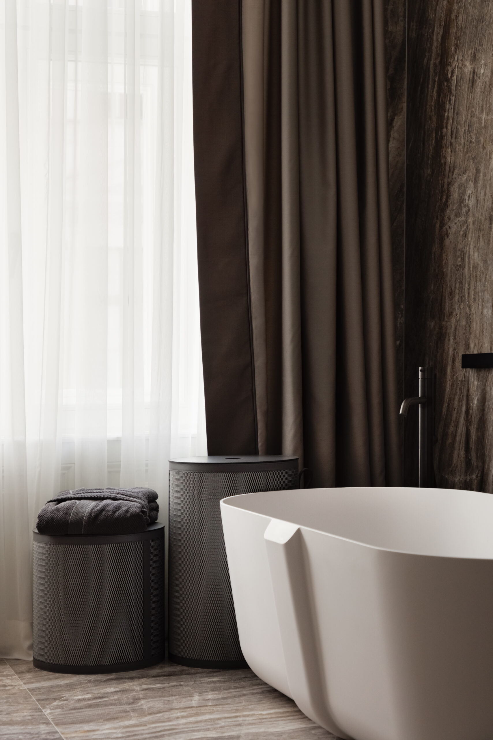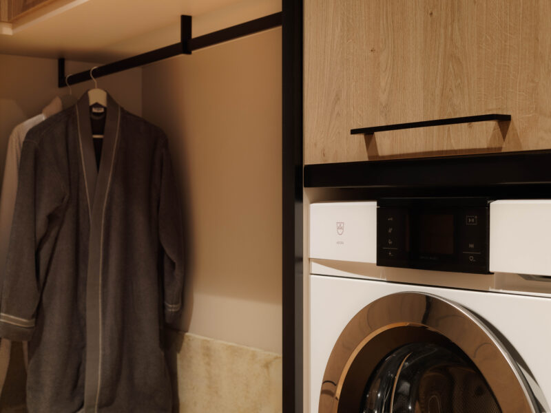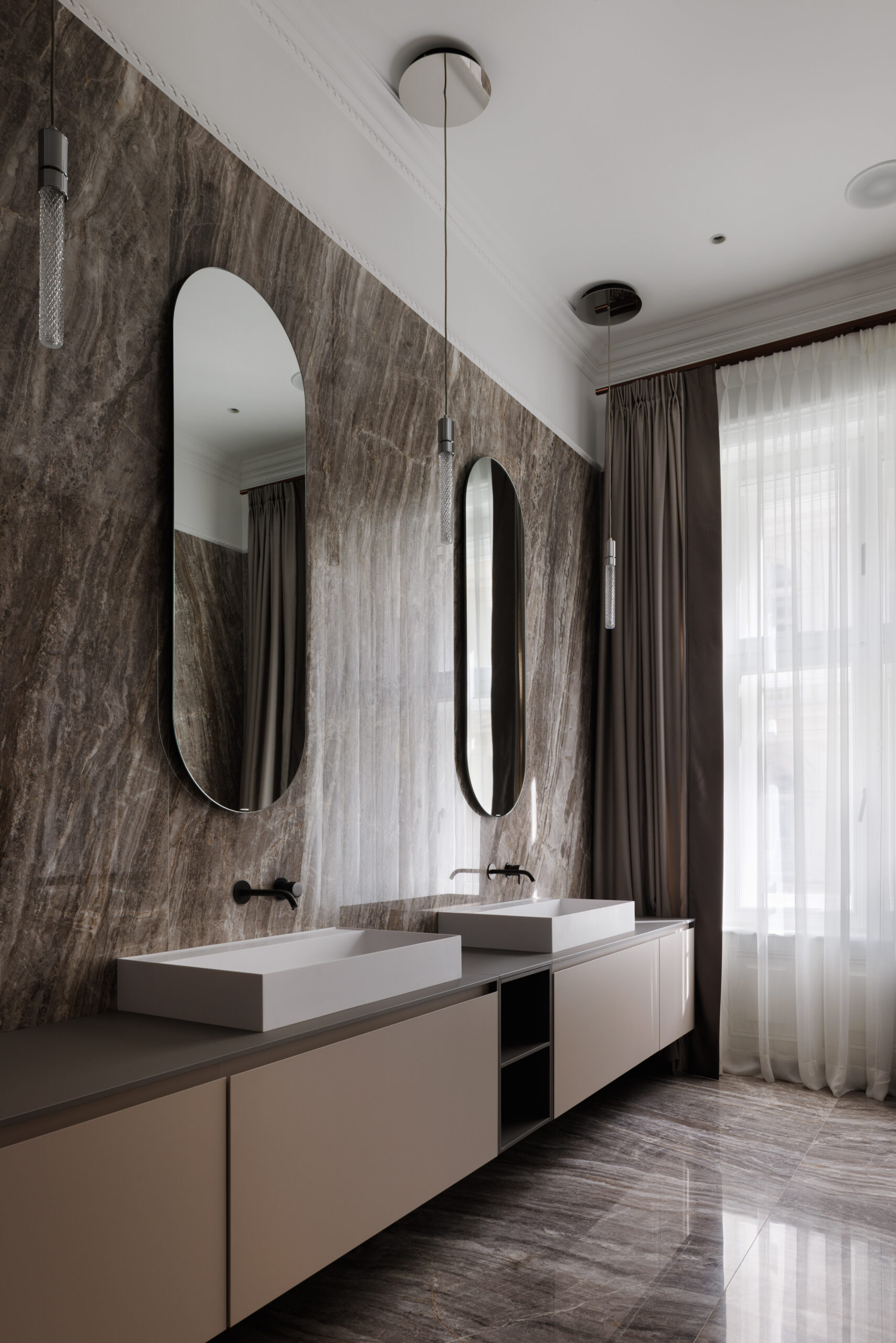 Für dieses Projekt wurden Möbel von Visionnaire sorgfältig ausgewählt und durch eine Reihe von speziell für diesen Raum angefertigten Elementen ergänzt. Zu den wichtigsten Sonderanfertigungen zählen die integrierten Küchenschränke und ein maßgeschneiderter Regalschrank für das Homeoffice, die beide Funktionalität mit architektonischer Raffinesse verbinden.