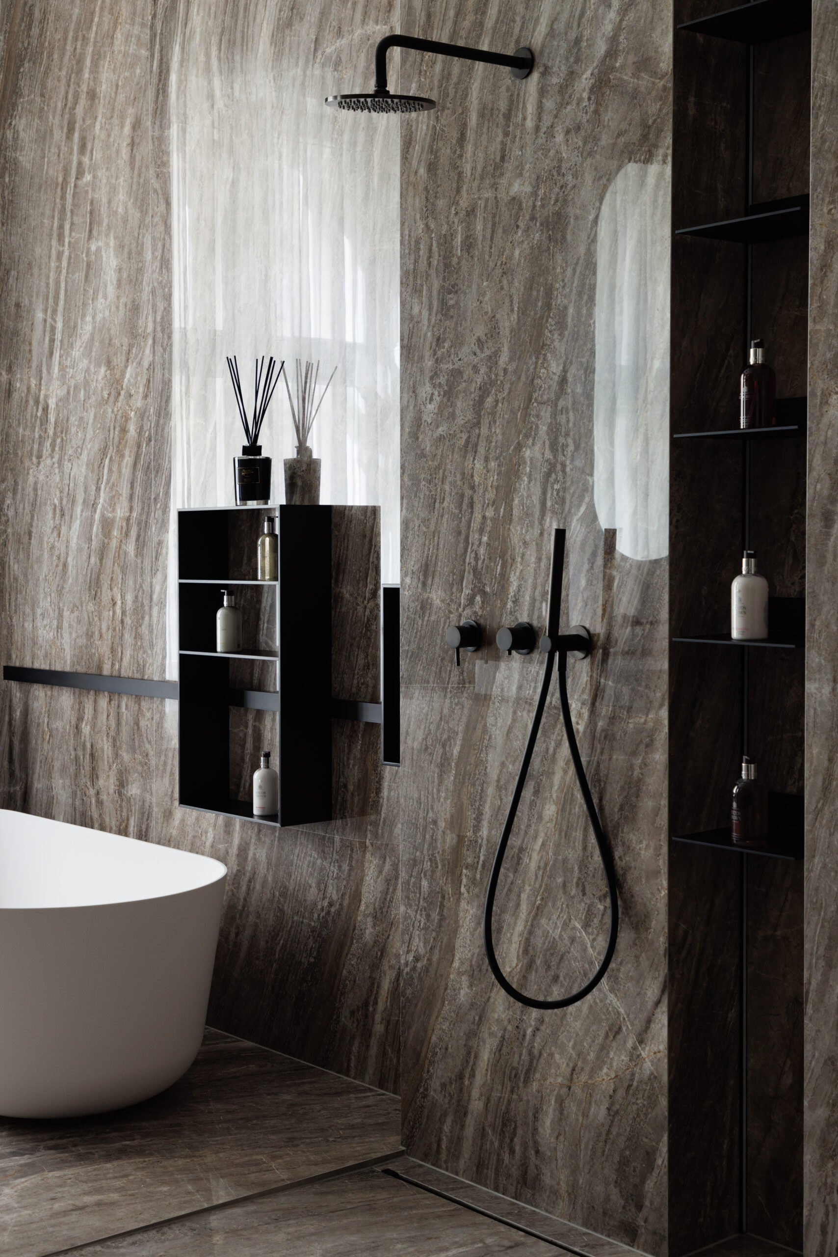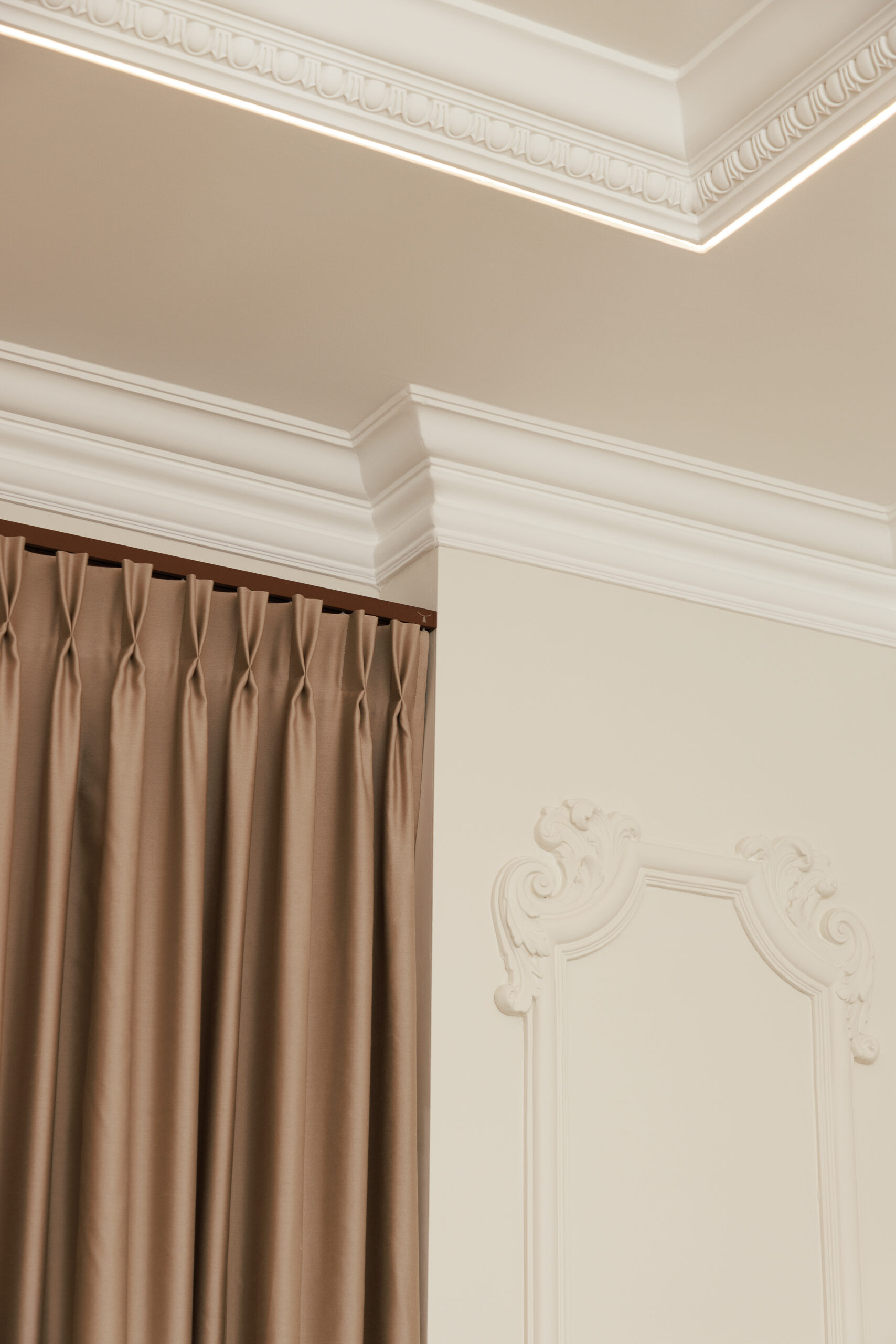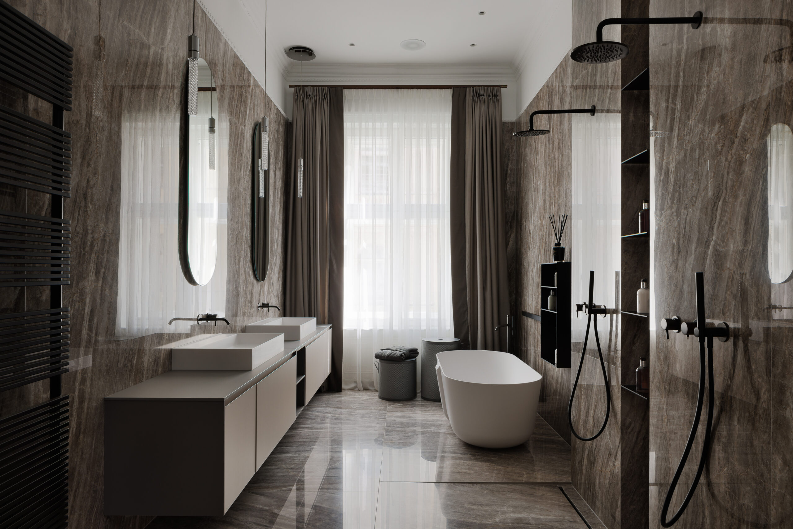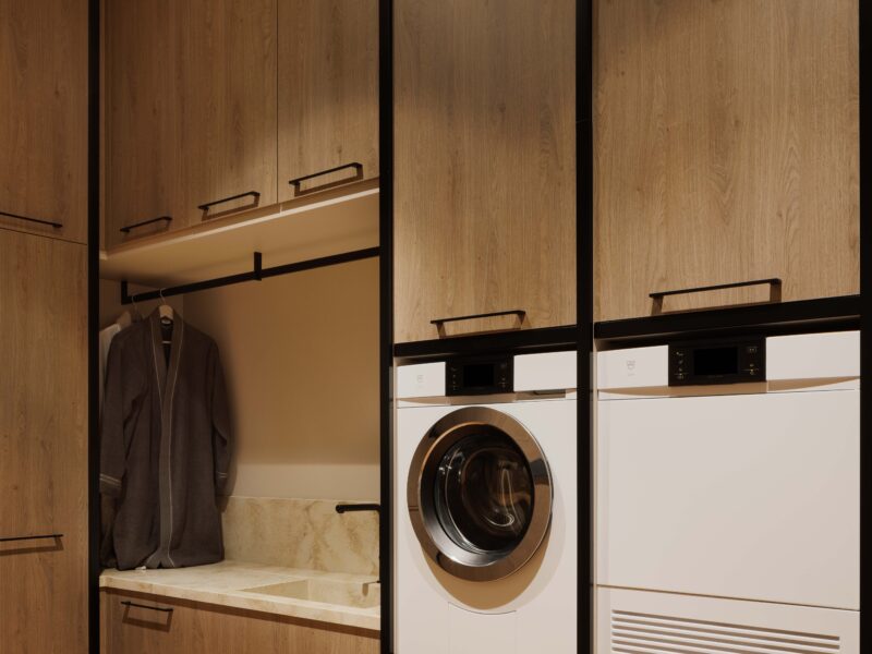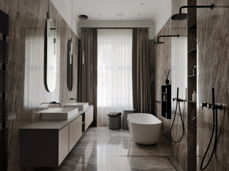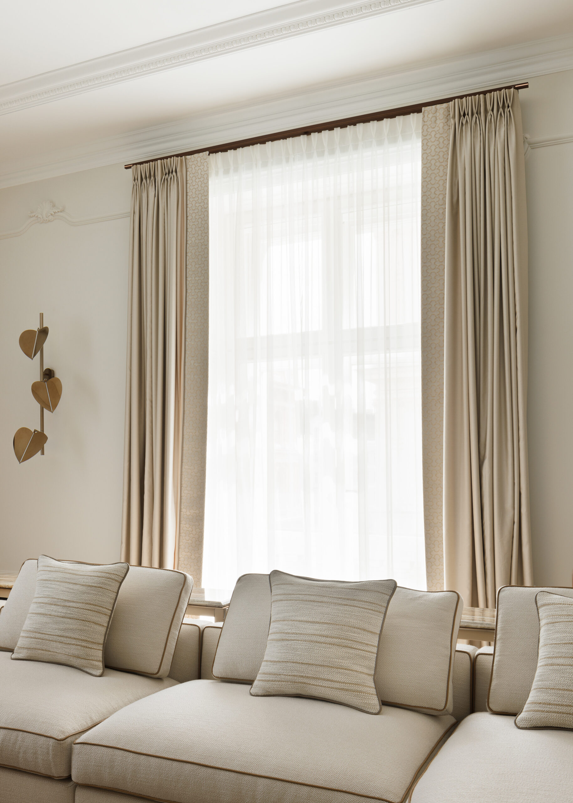 Für dieses Projekt wurden Möbel von Visionnaire sorgfältig ausgewählt und durch eine Reihe von speziell für diesen Raum angefertigten Elementen ergänzt. Zu den wichtigsten Sonderanfertigungen zählen die integrierten Küchenschränke und ein maßgeschneiderter Regalschrank für das Homeoffice, die beide Funktionalität mit architektonischer Raffinesse verbinden.
